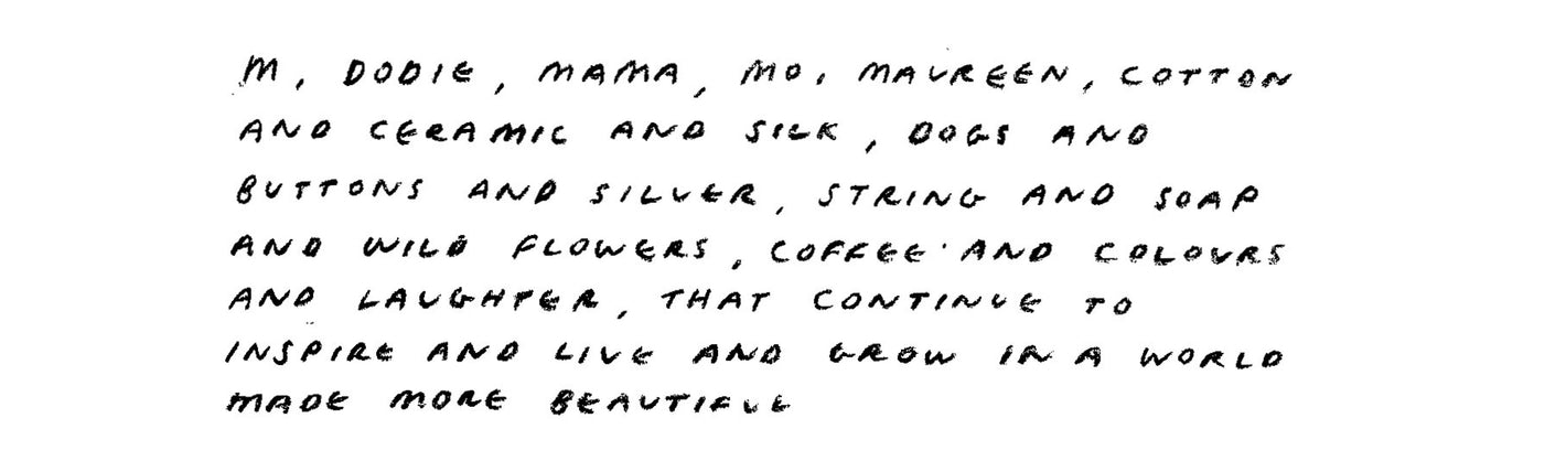 The simple love of shop keeping, dressing and talking to people, making, walking and laughing, with dogs not far behind, that was Maureen. A love of colour and shape, the way something is made, utility and freedom, makers.