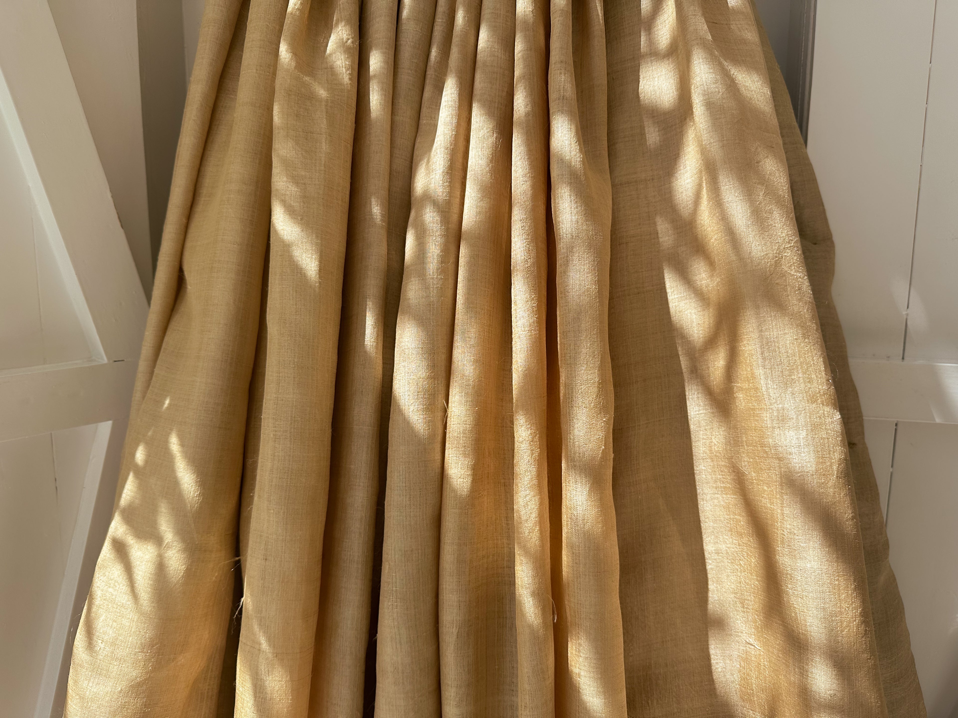 Muga silk is a woven fabric from India, loved for its natural golden colour and exceptional history. The silk is produced by muga silkworms which feed on Som and Soalu leaves, native to the region of Assam. The intricate practice of producing muga silk is labour-intensive, involving careful rearing of silkworms, spinning, and