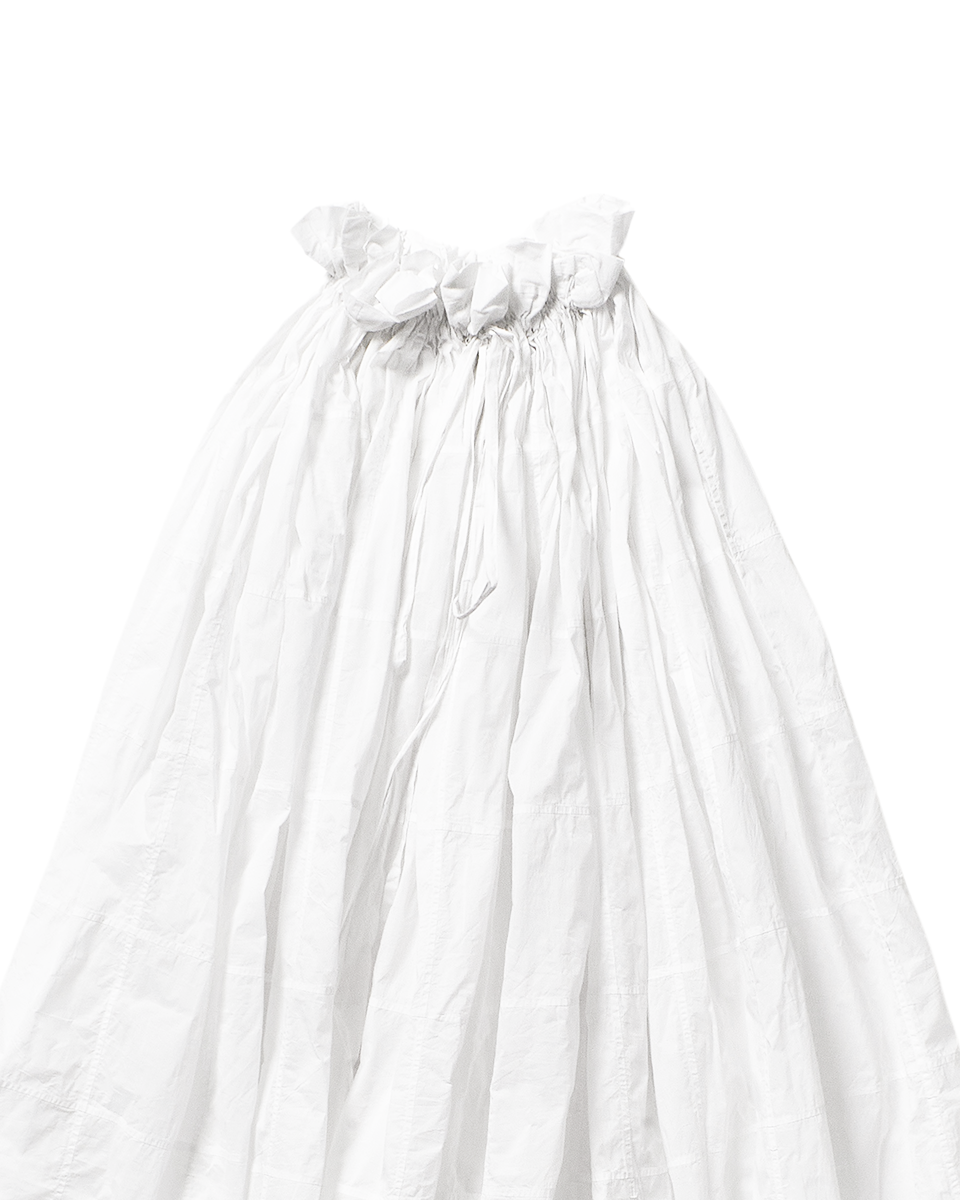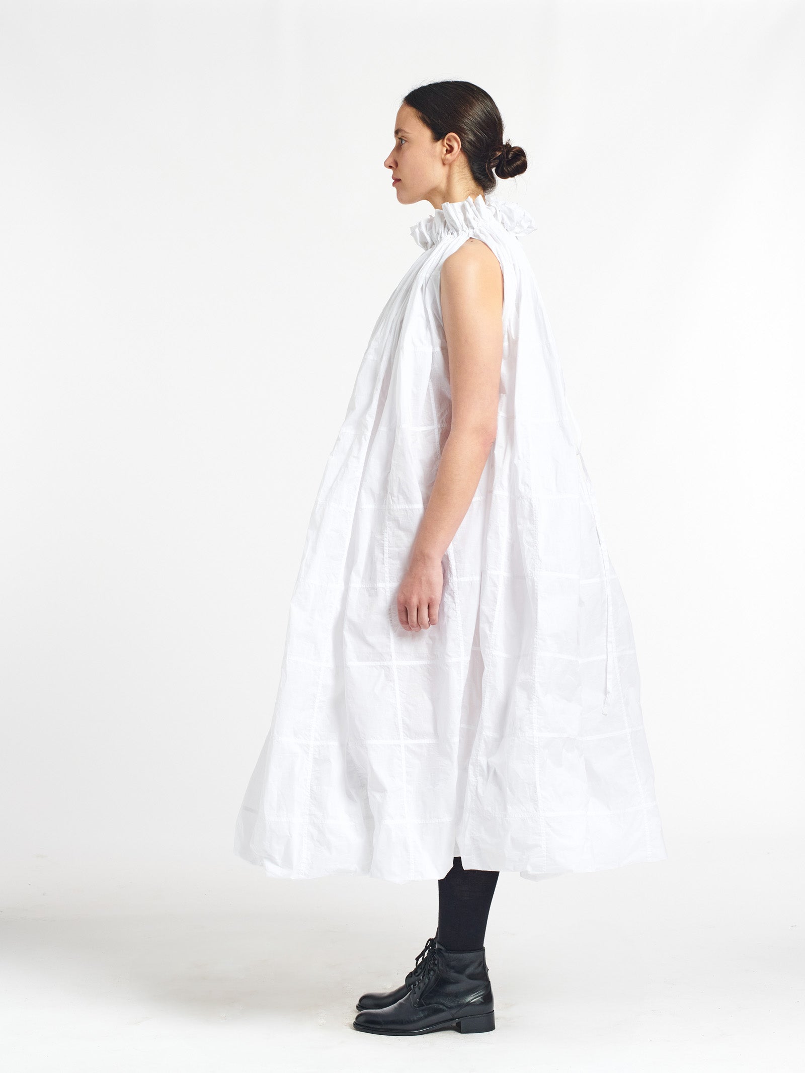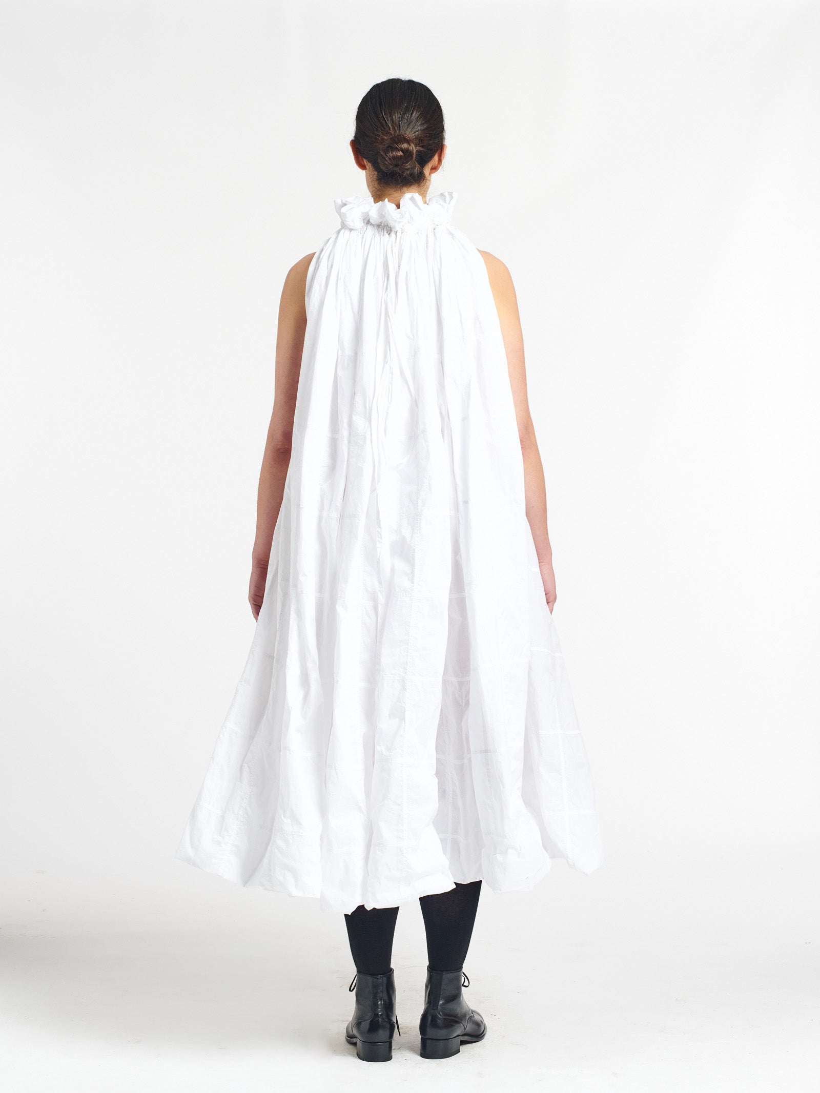 sleeveless a-line dress with adjustable buttoned hem