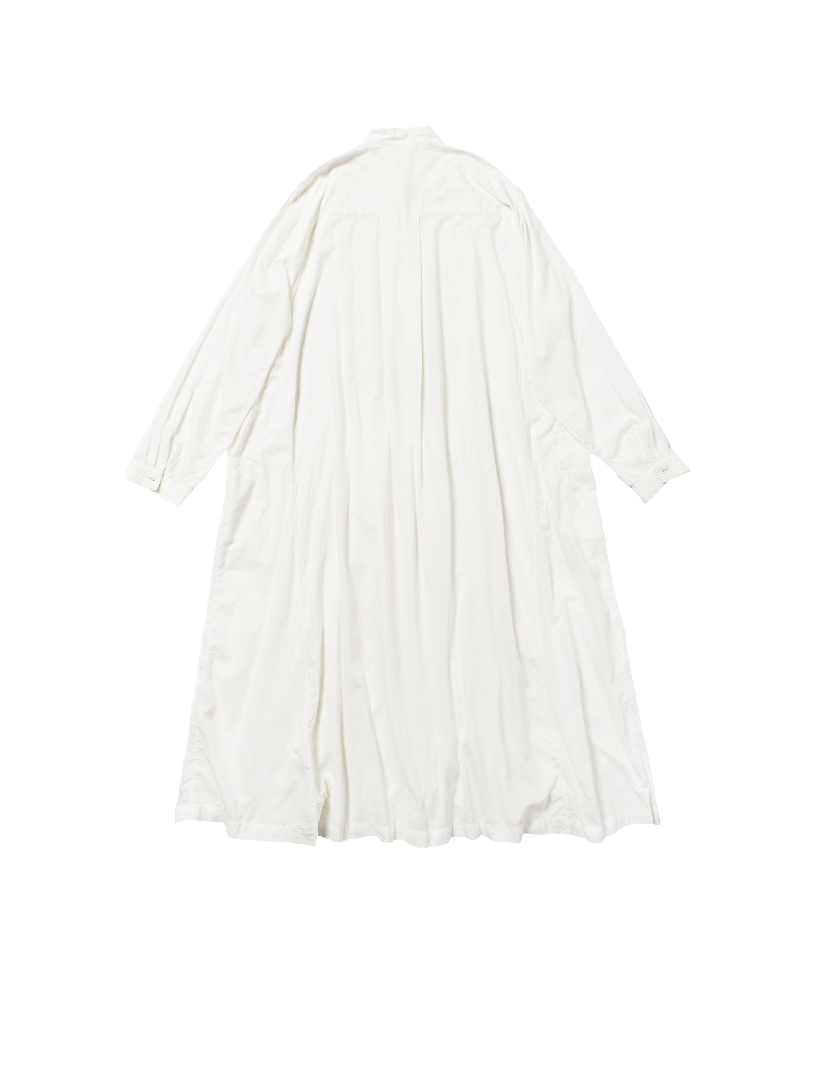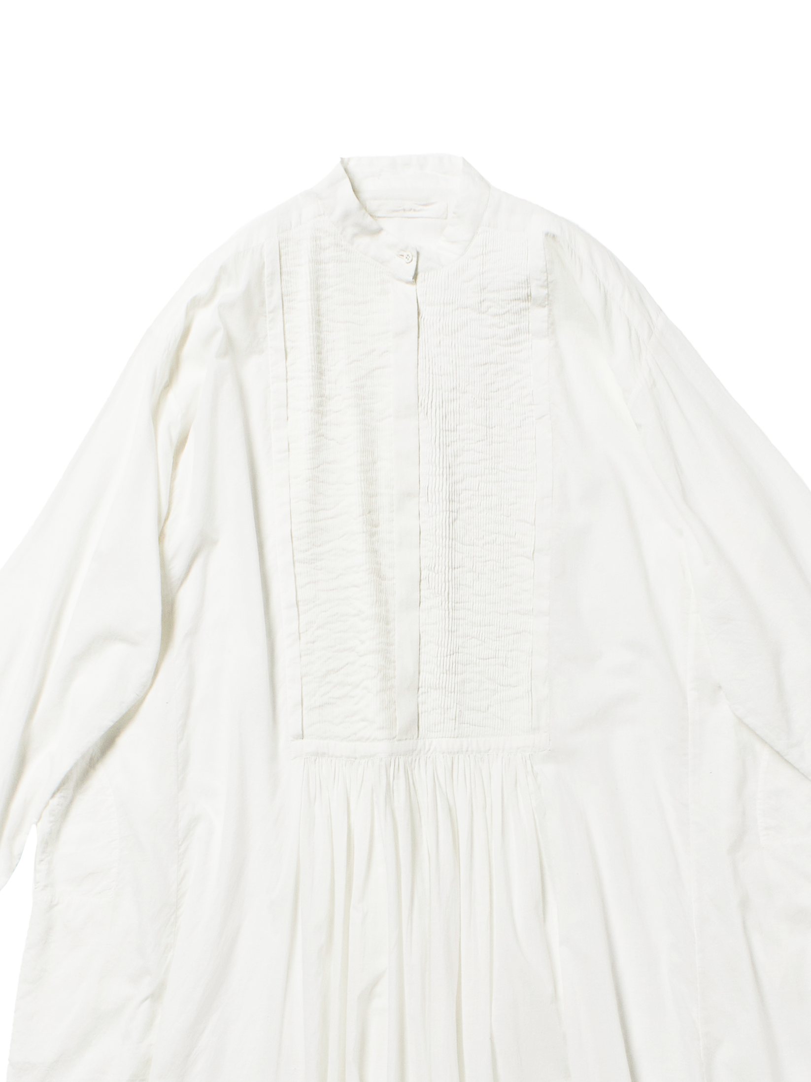 long sleeved dress with pin tuck bib and cuffs khadi 400 finished by hand small across shoulder 55cm, length 126.5cm, medium across shoulder 57cm, length 123.5cm, large across shoulder 59cm, length 126.5cm