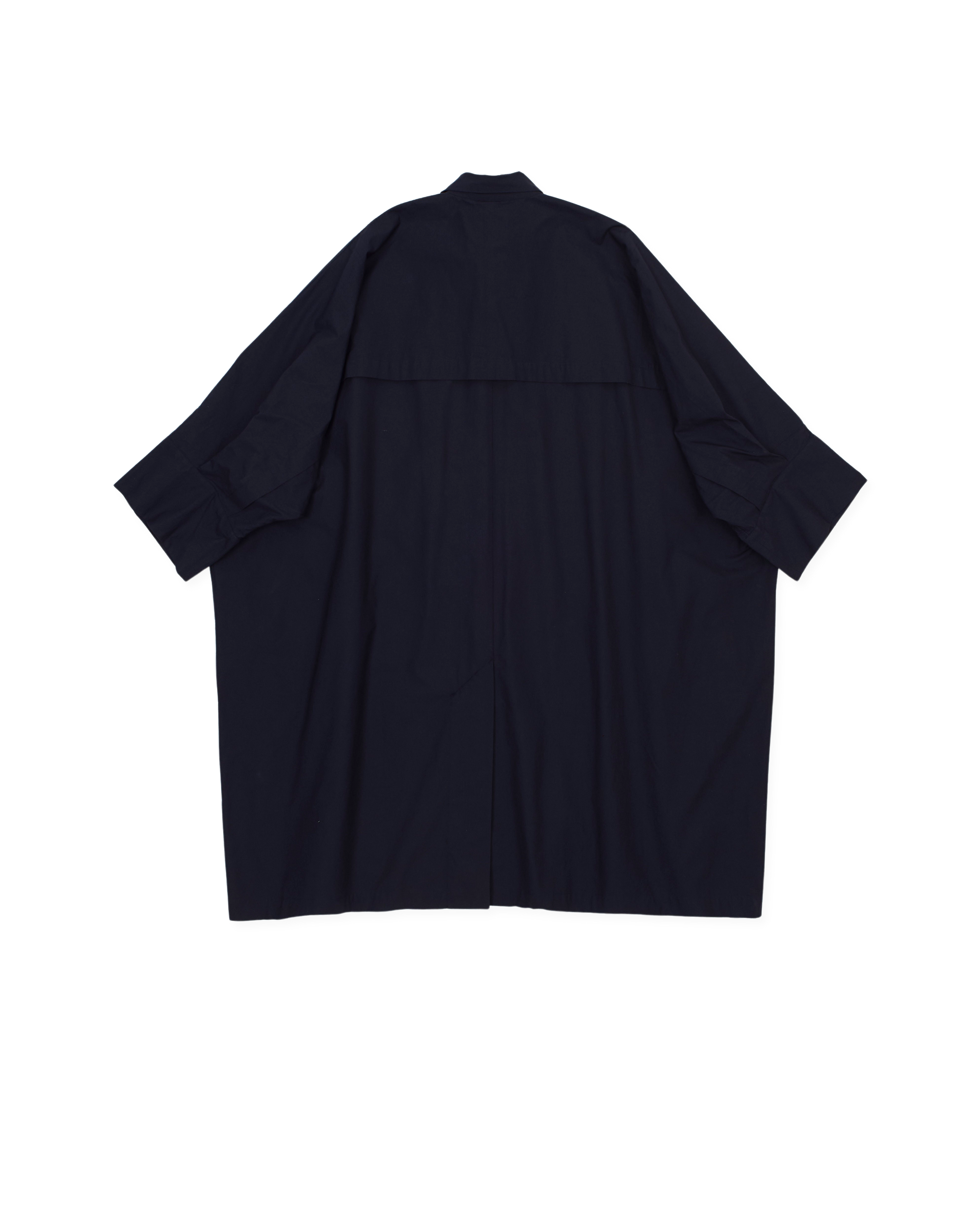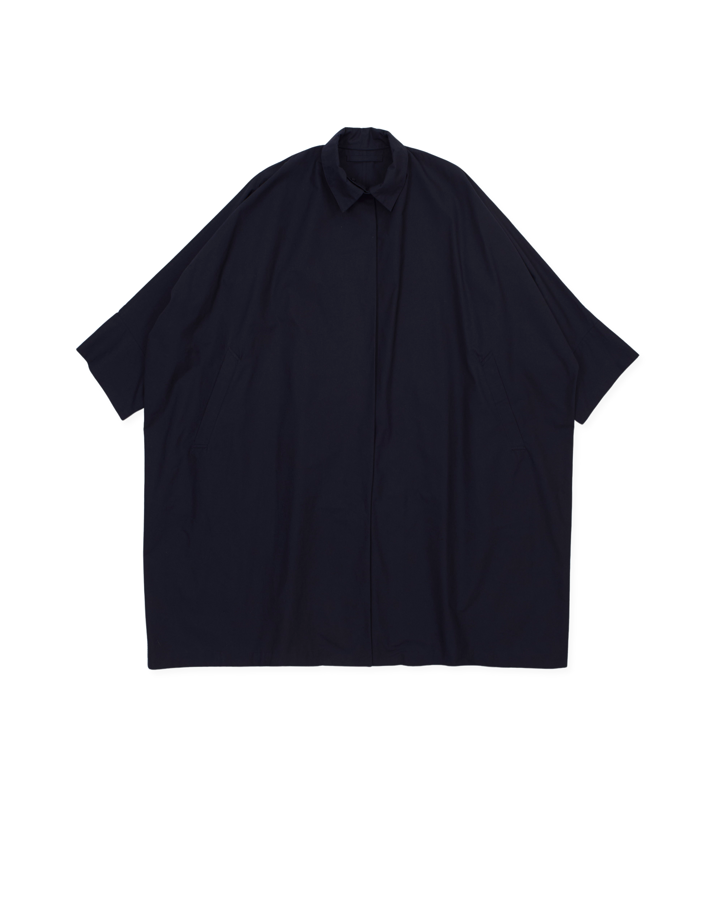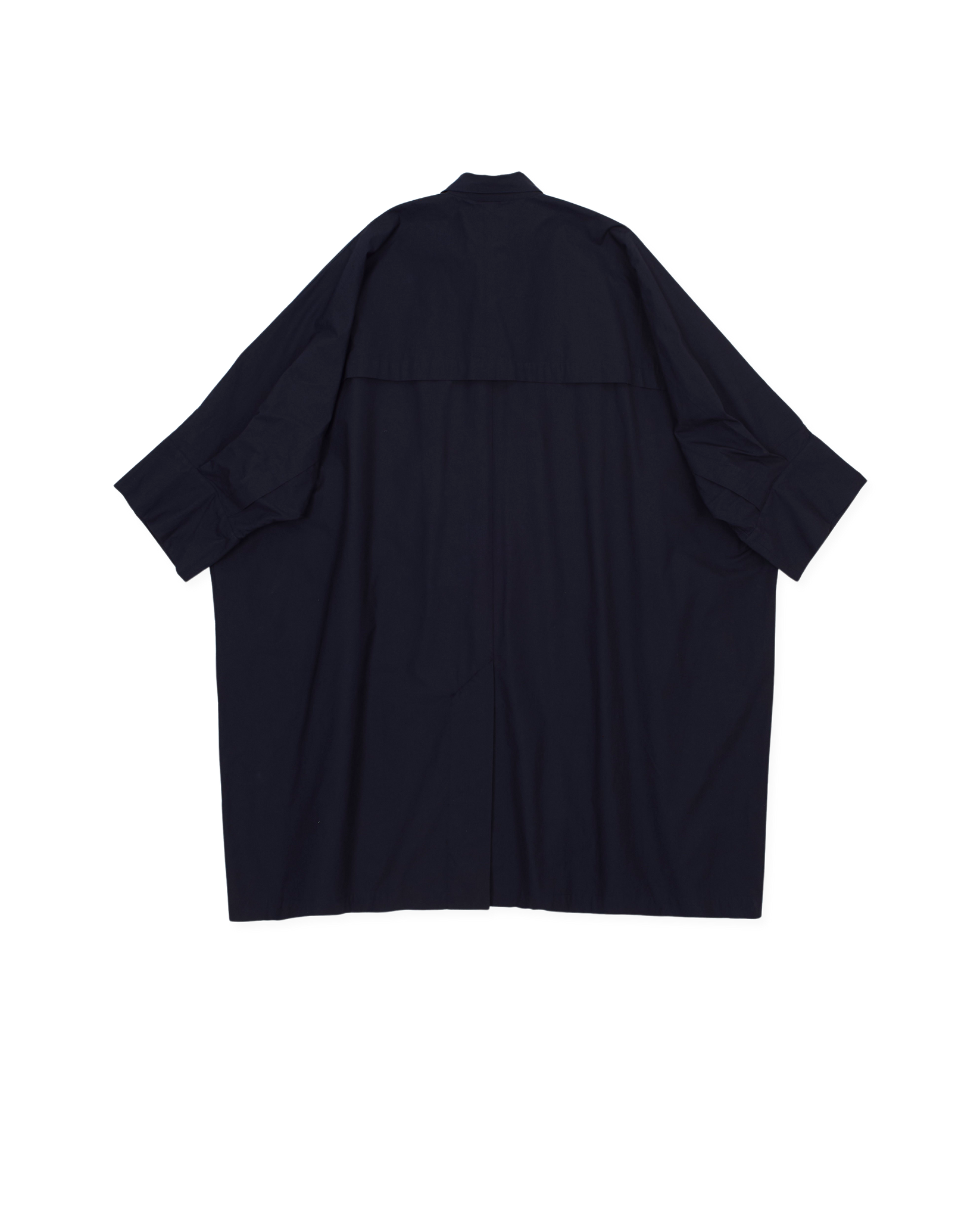 large square-cut coat, horizontal back vent, slant pockets with flaps