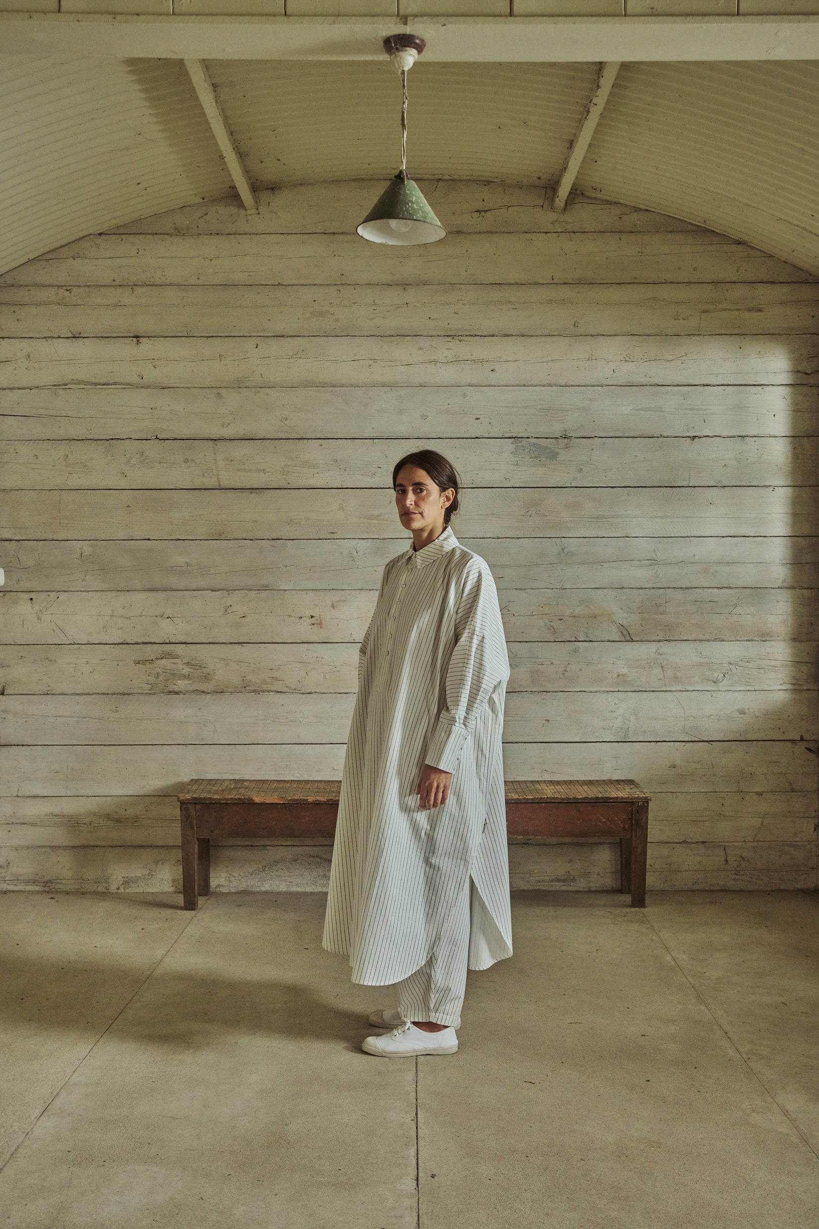 oversized shirt, wide cut, tapered sides, slant front pockets