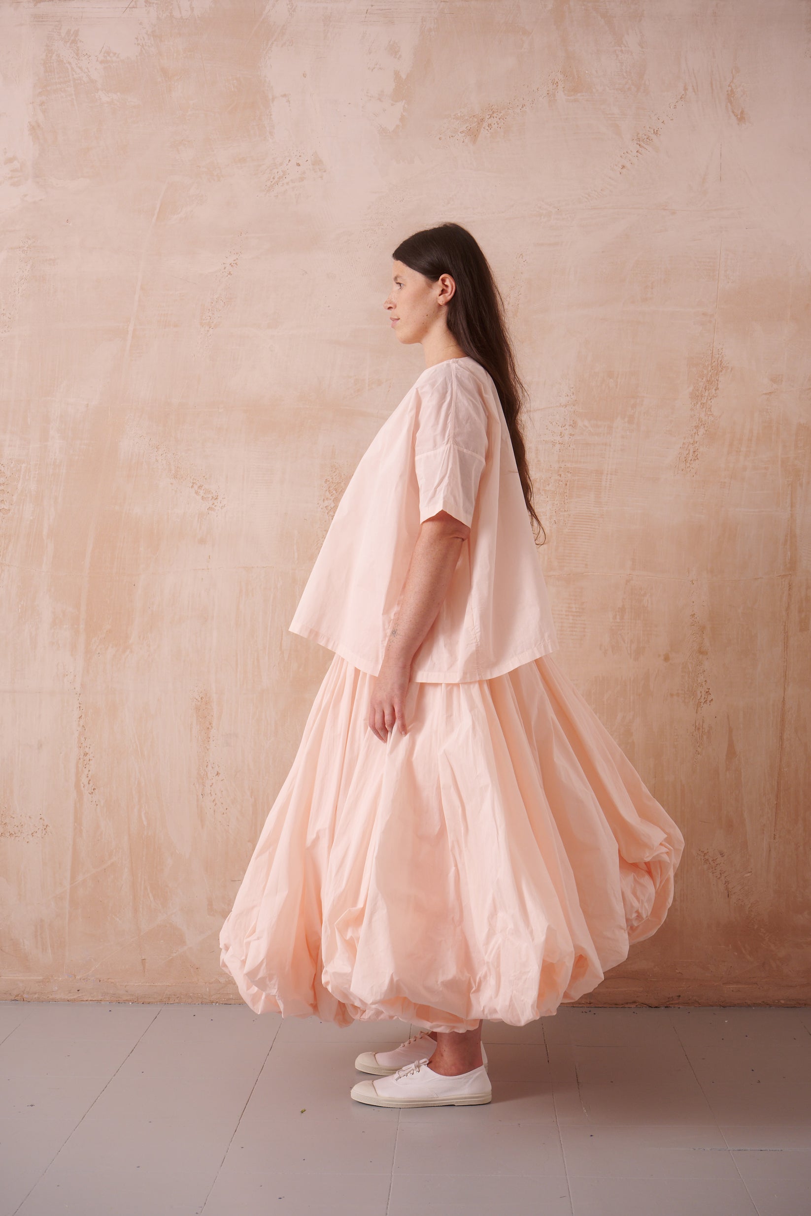 11m balloon skirt, a line shape, elasticated waist with drawstring, fine pleats