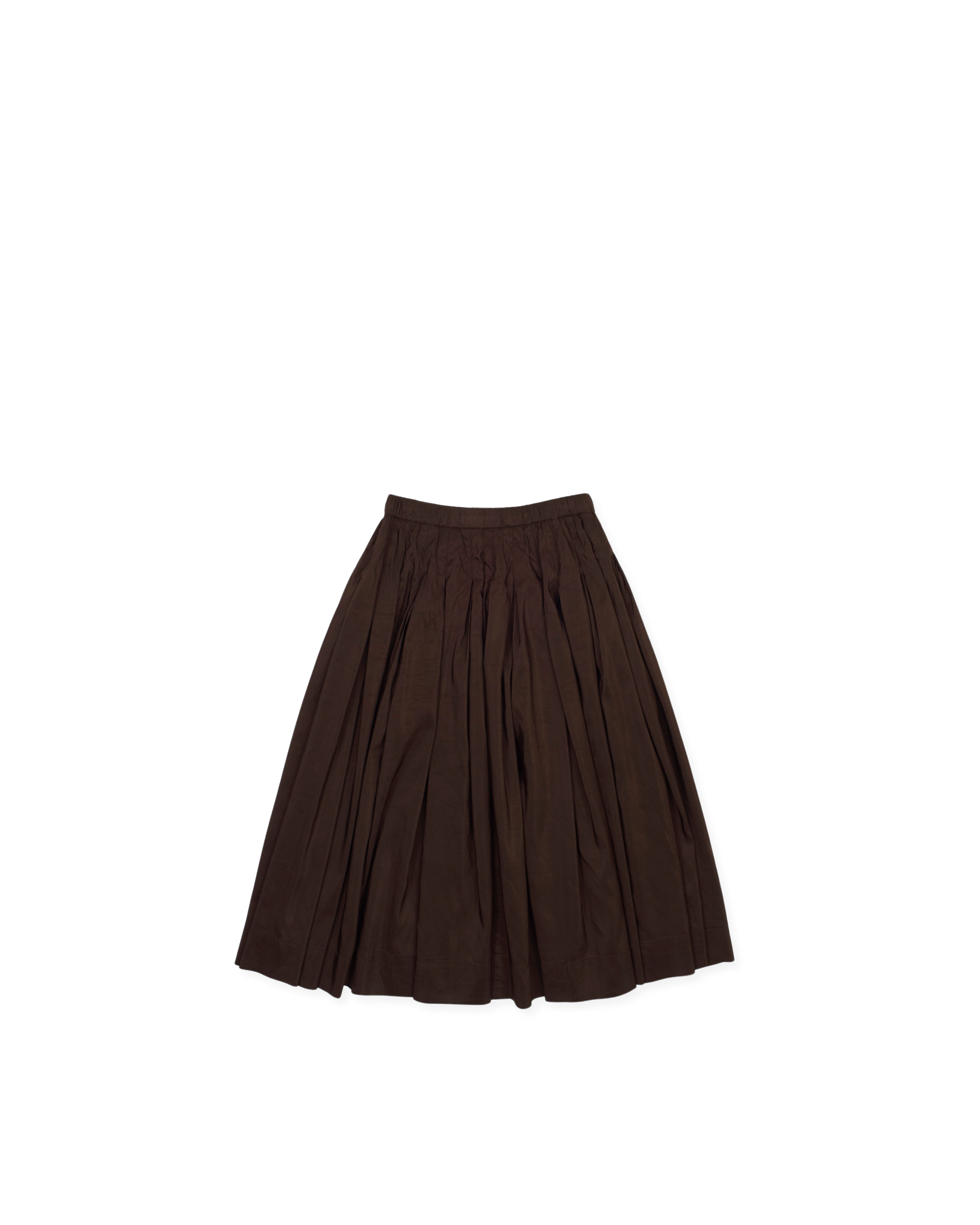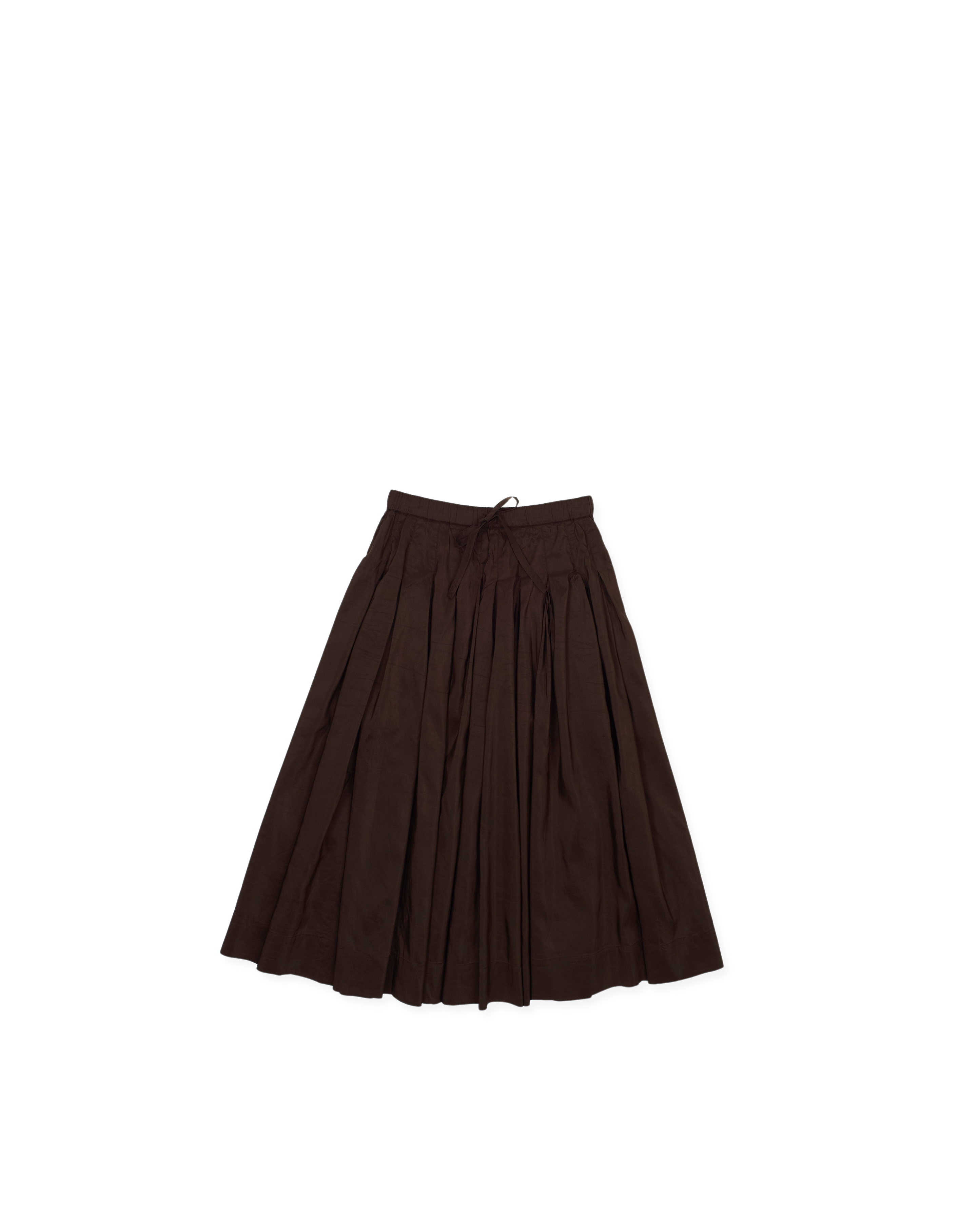 hazelnut full skirt, deep pleats, drawstring waist, mid length