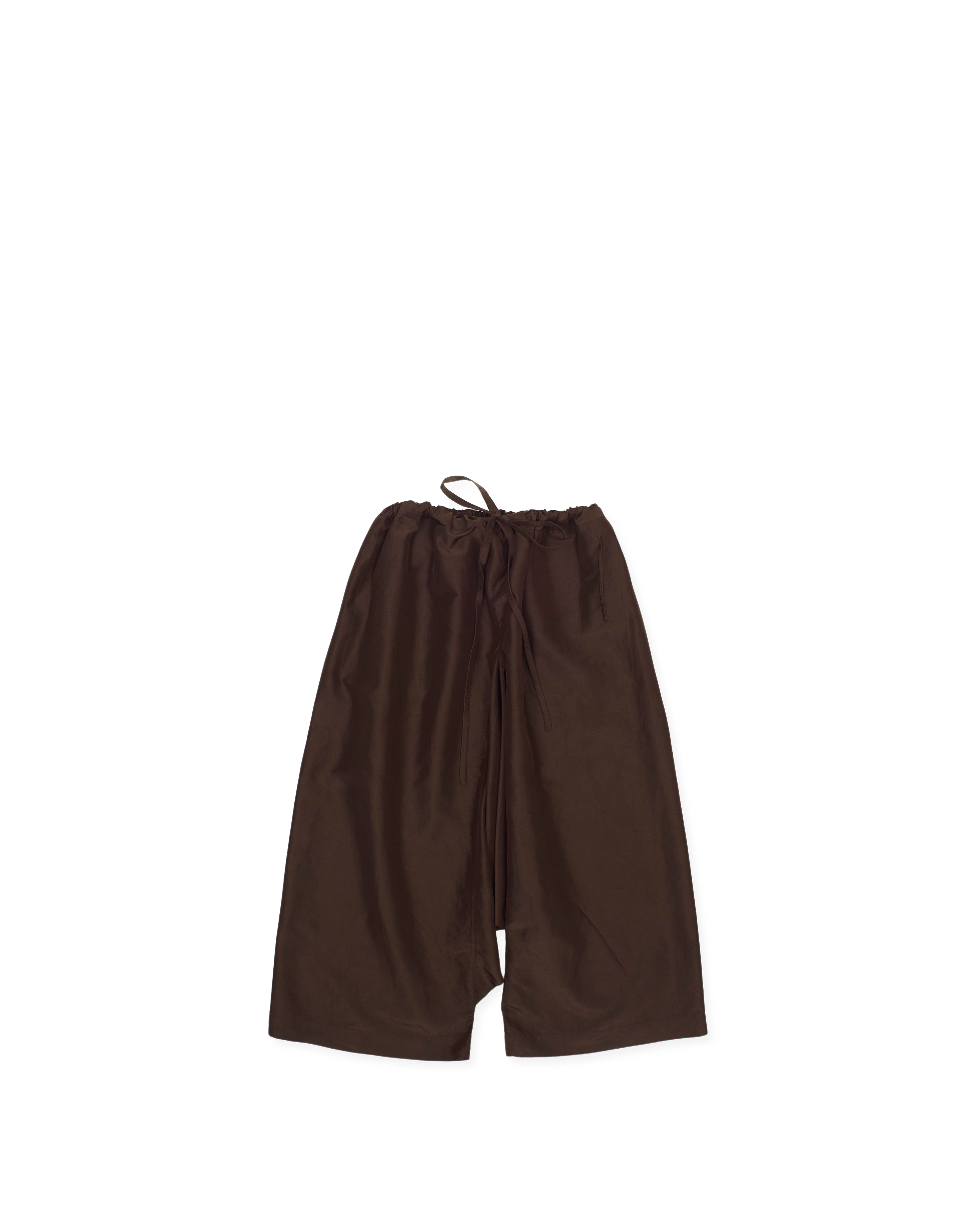 hazelnut full trouser, dropped crotch, drawstring waist, side seam pockets