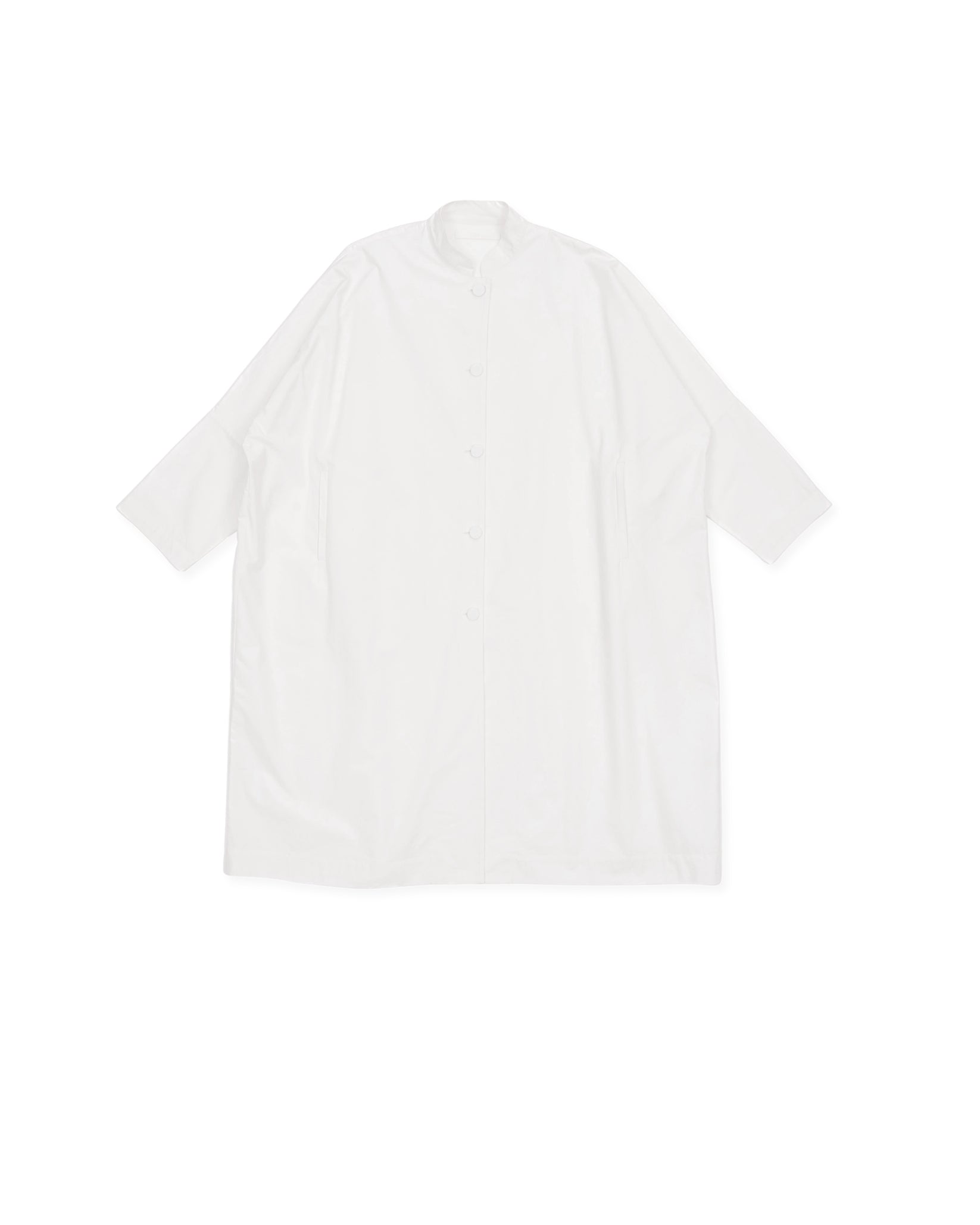 oversized square cut coat, drop shoulder, mao collar and covered buttons