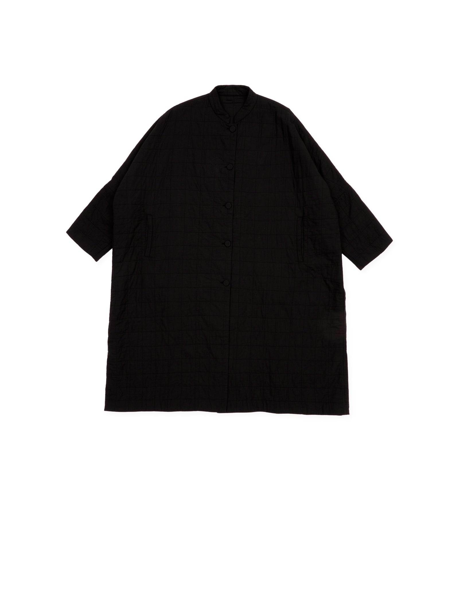 oversized square cut coat, drop shoulder, mao collar and covered buttons