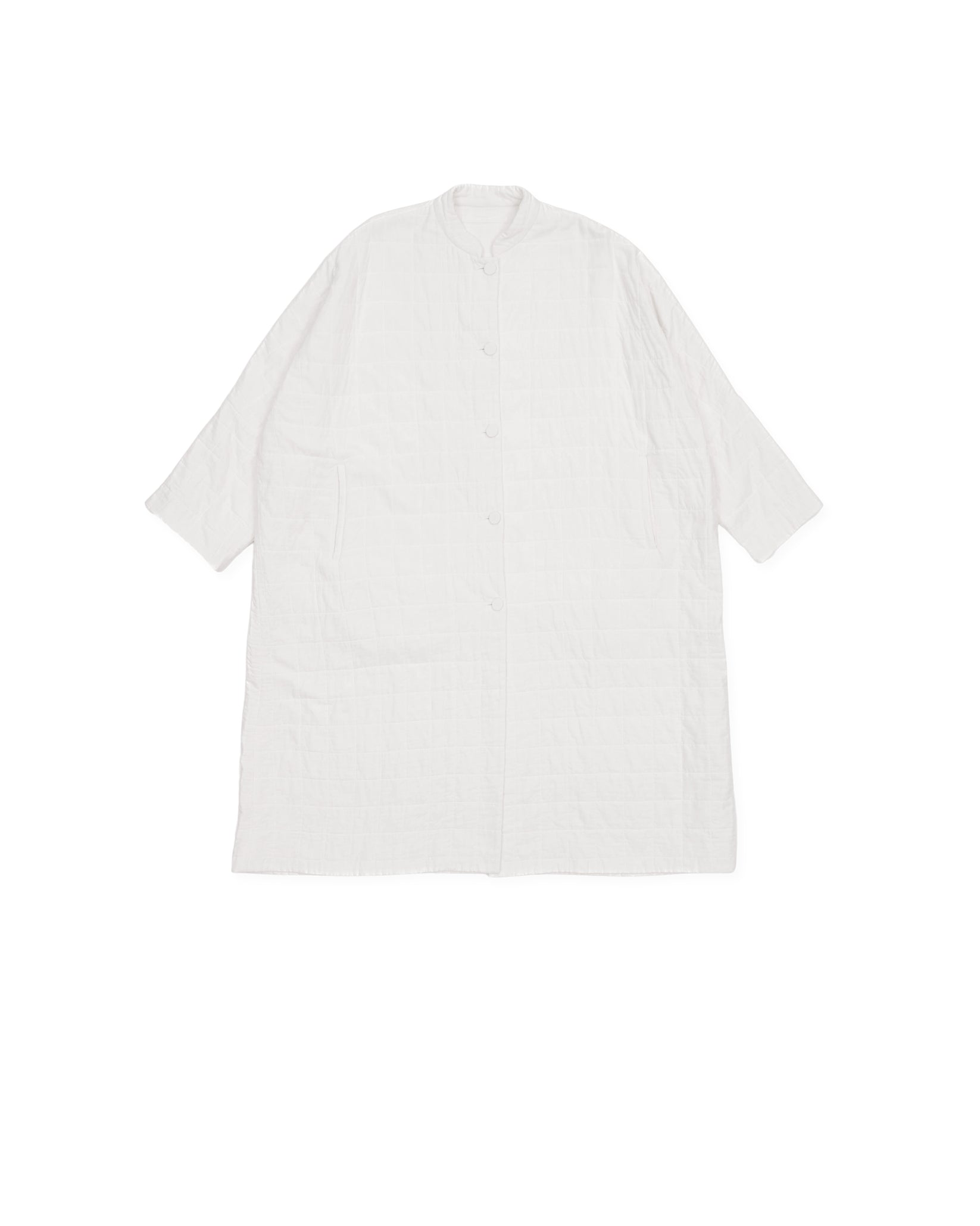 oversized square cut coat, drop shoulder, mao collar and covered buttons