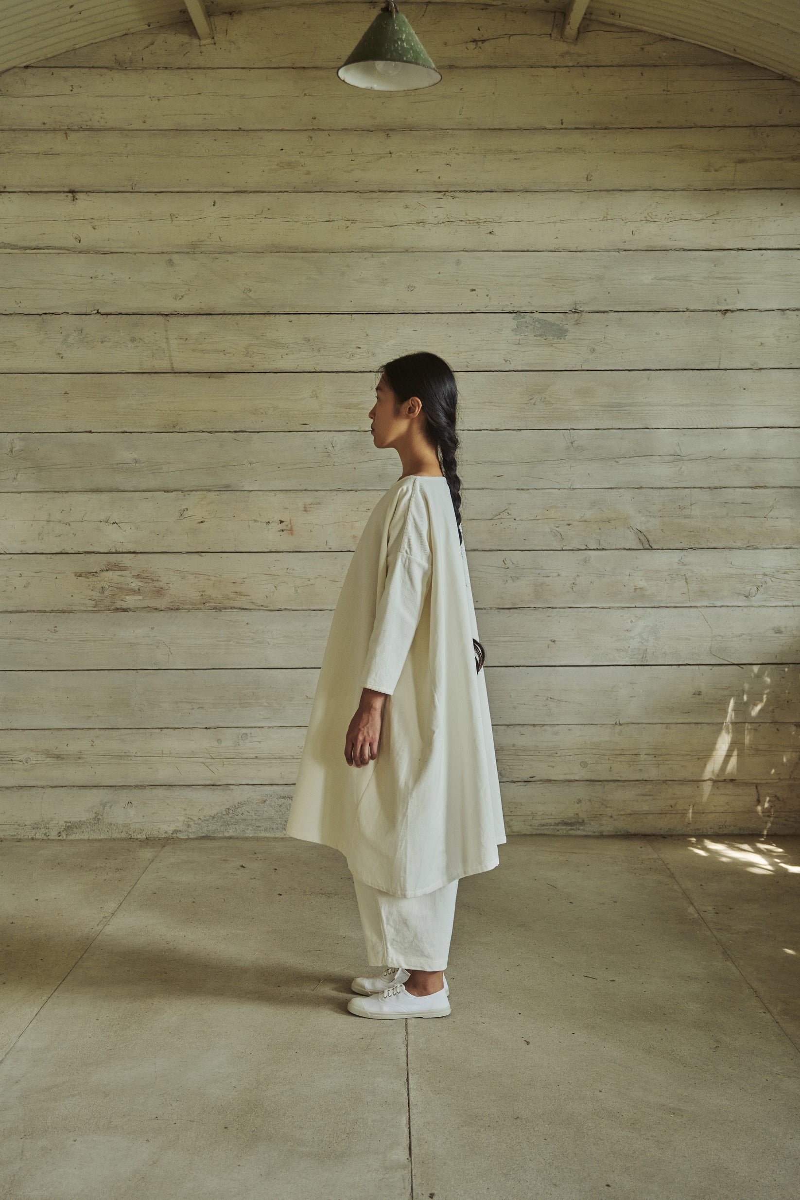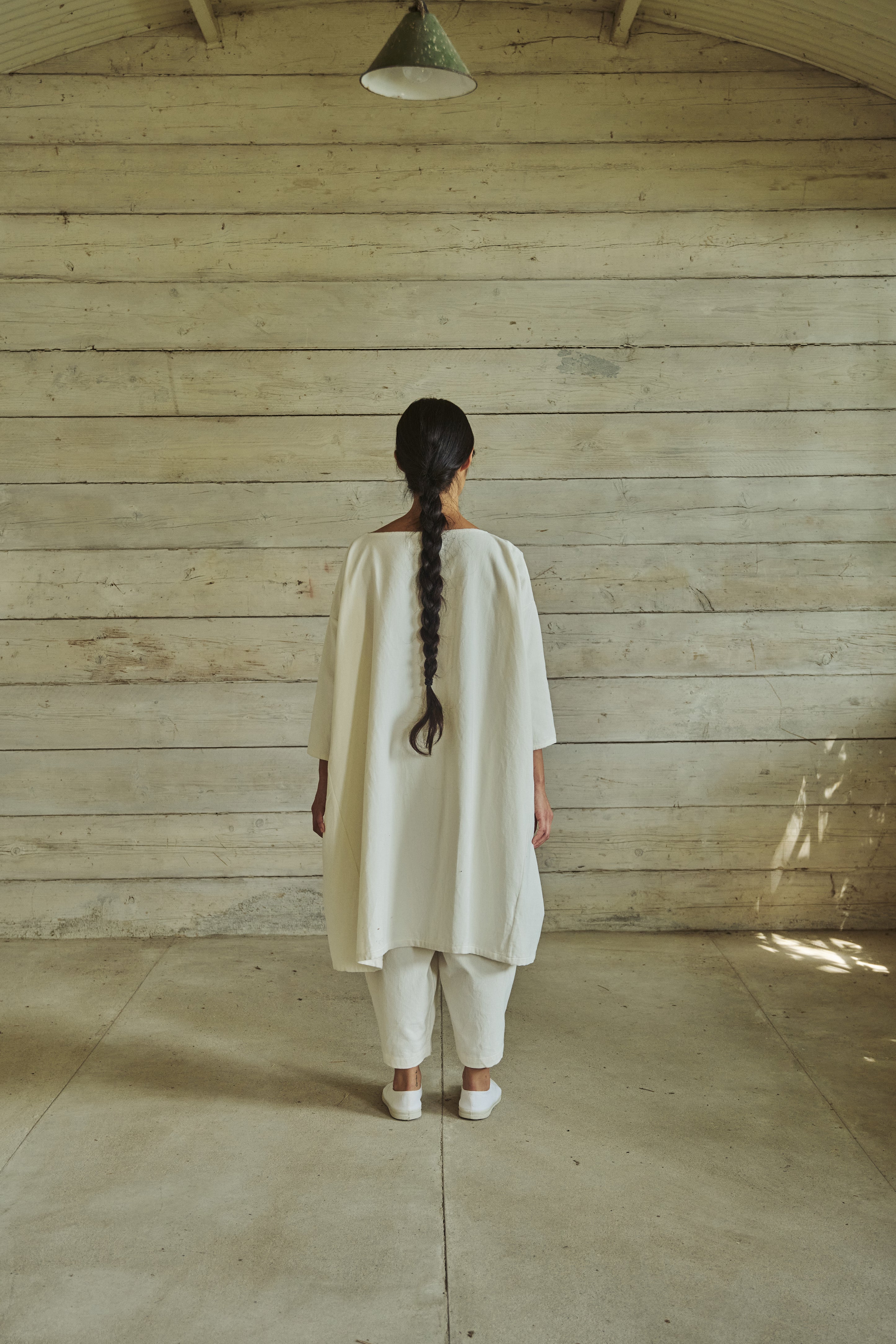 simple tunic, wide boat neck, side panels, side panel pockets