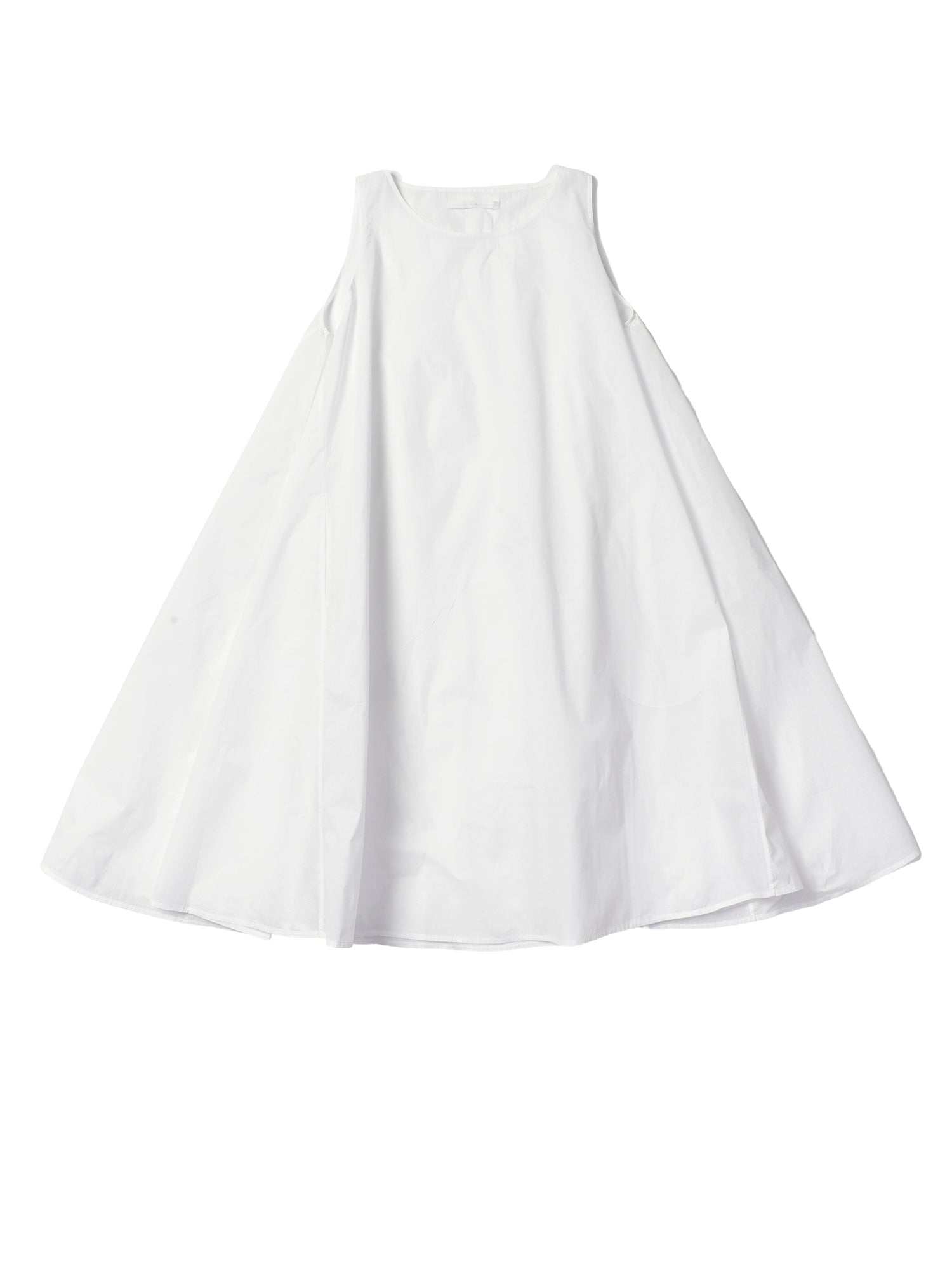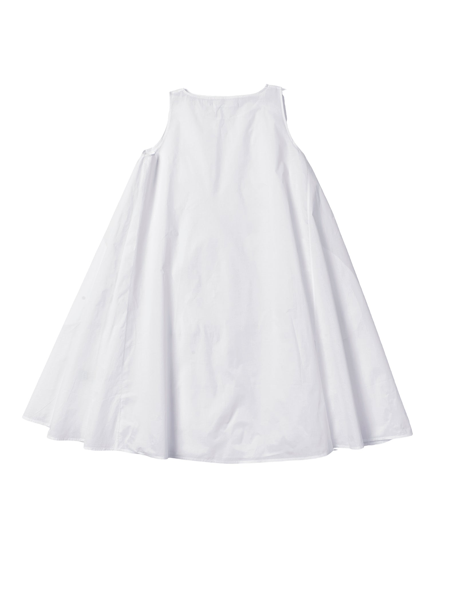 simple petticoat dress, full aline shape, rounded neck, in seam pockets