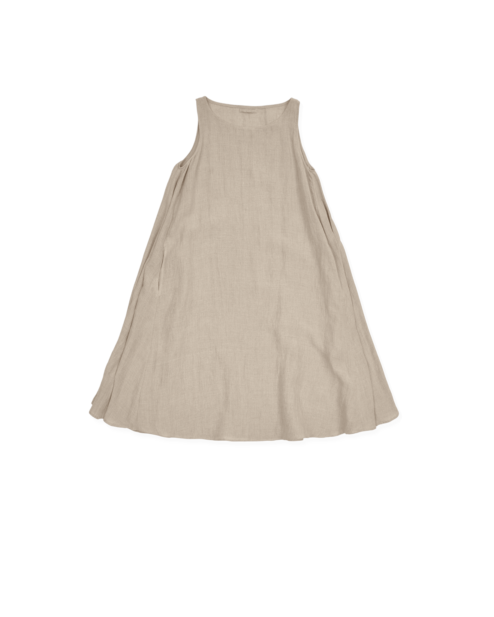 simple petticoat dress, full aline shape, rounded neck, in seam pockets
