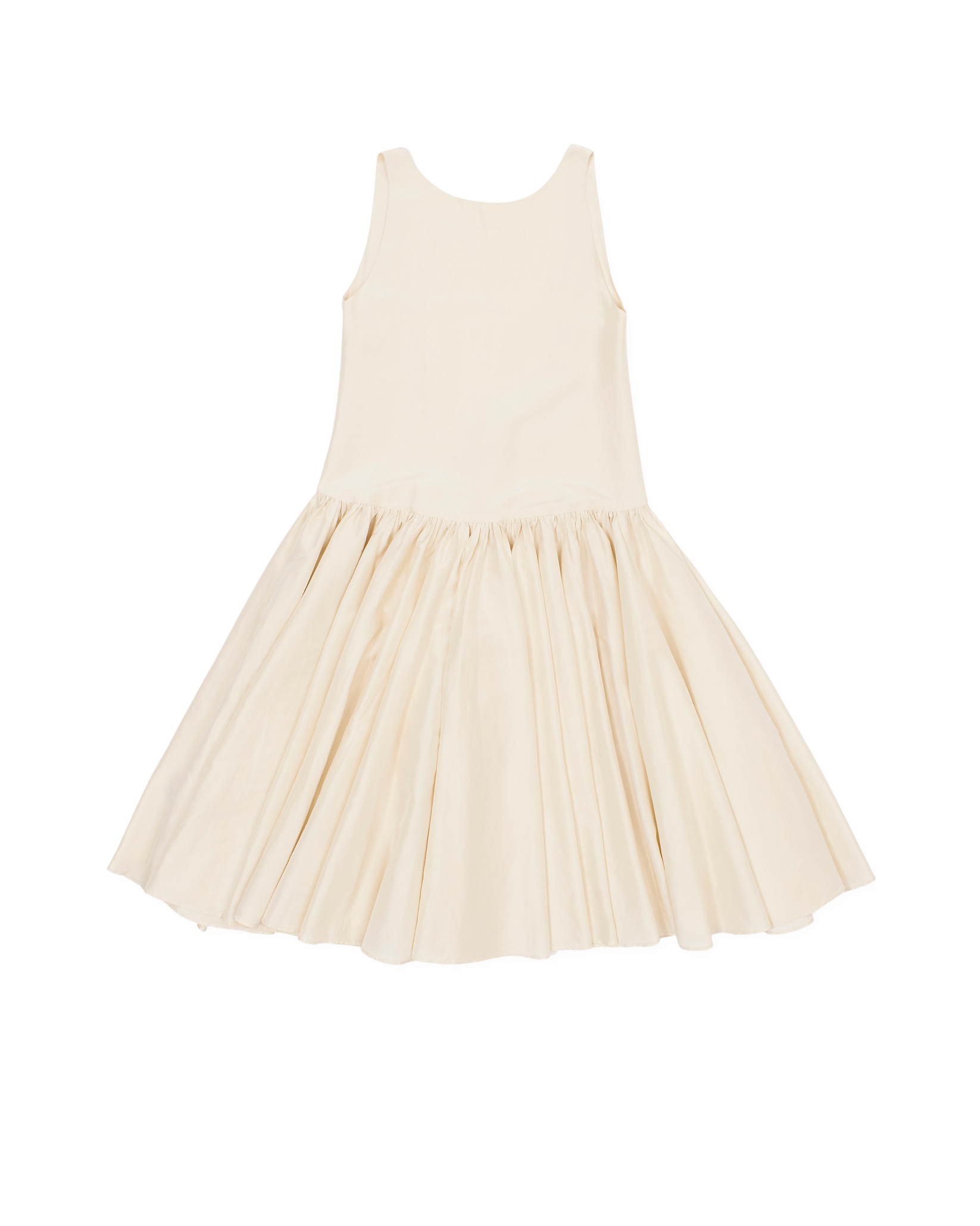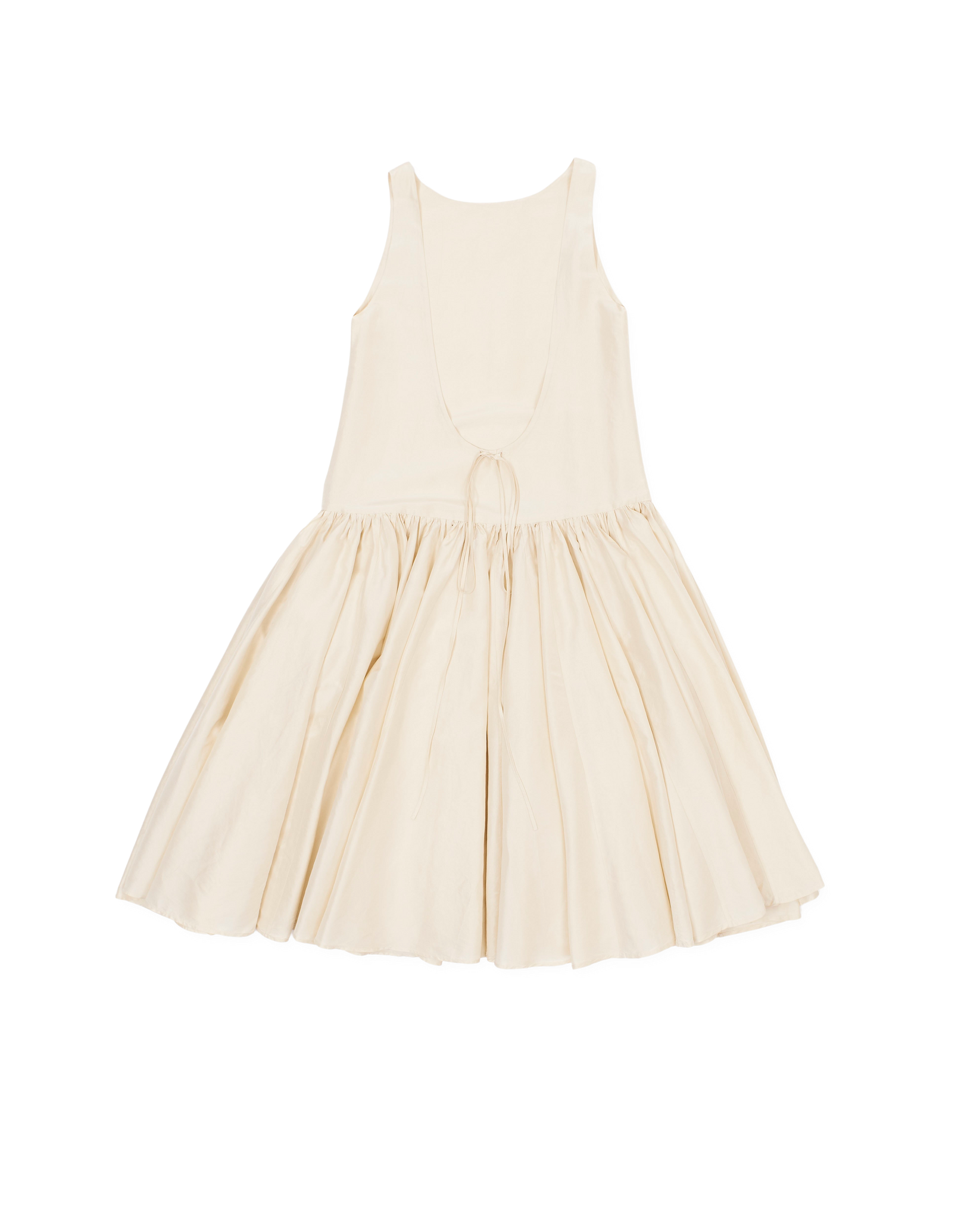 cream drop waist dress, double layered, low back, drawstring tie
