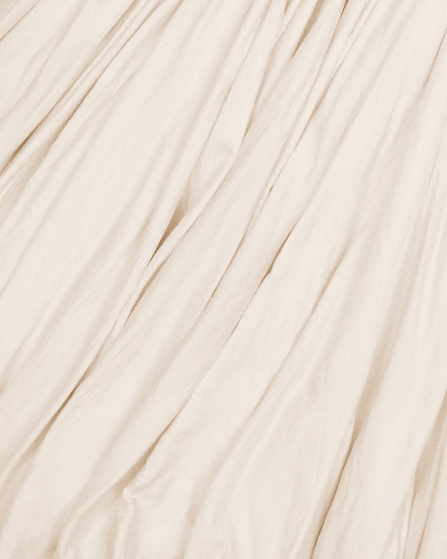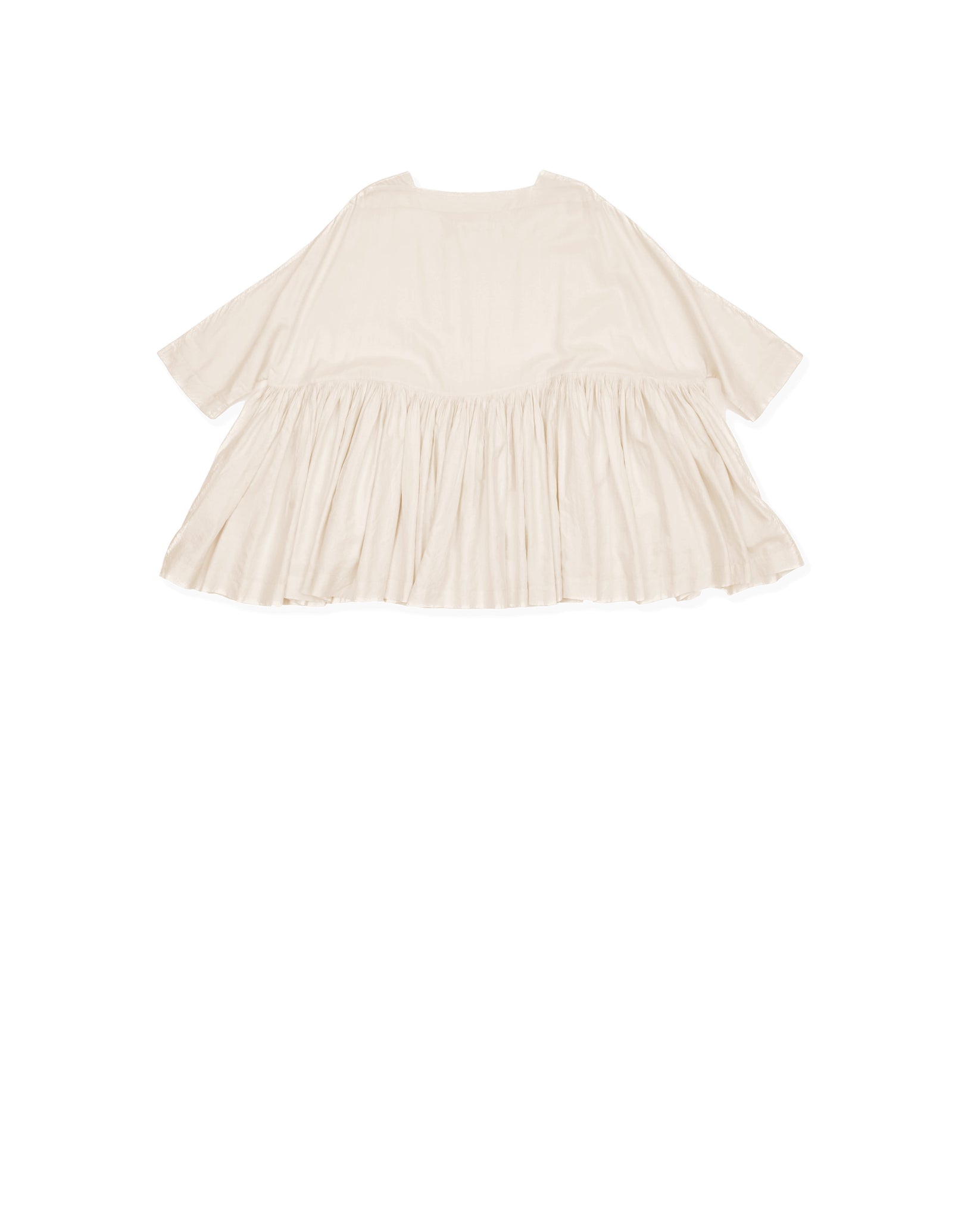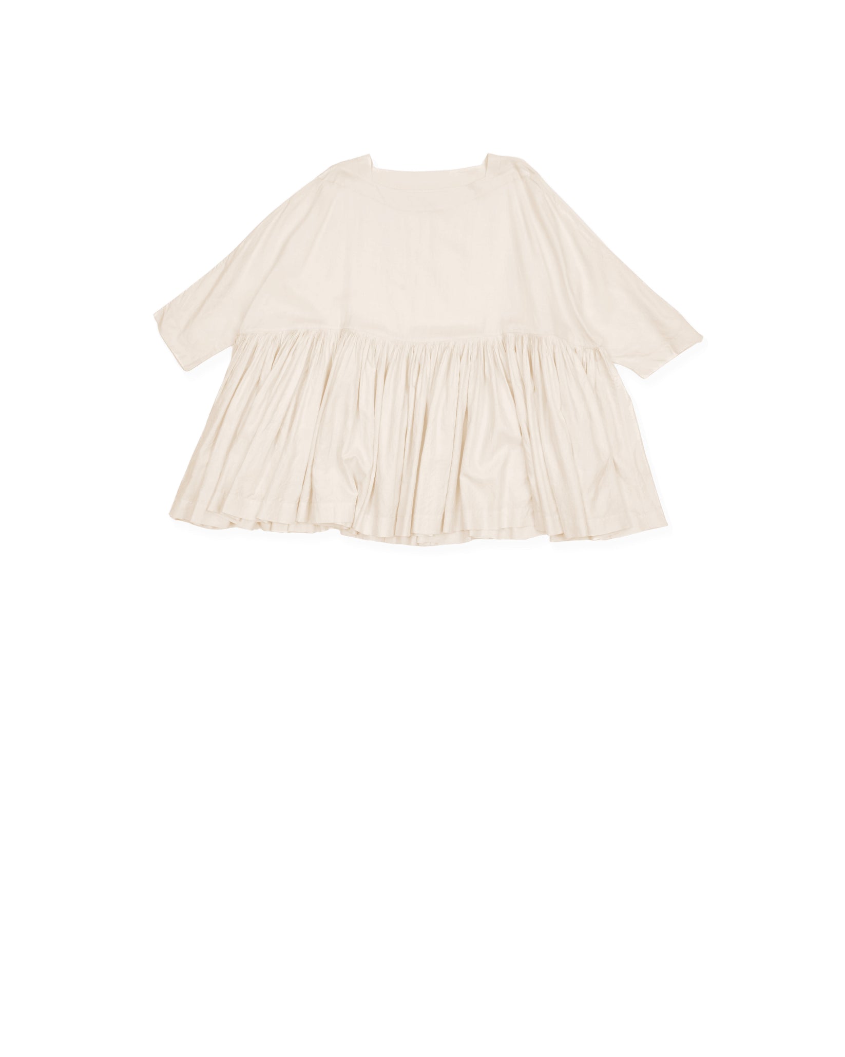 ruffled top, boat neck, elbow length sleeves, full skirt