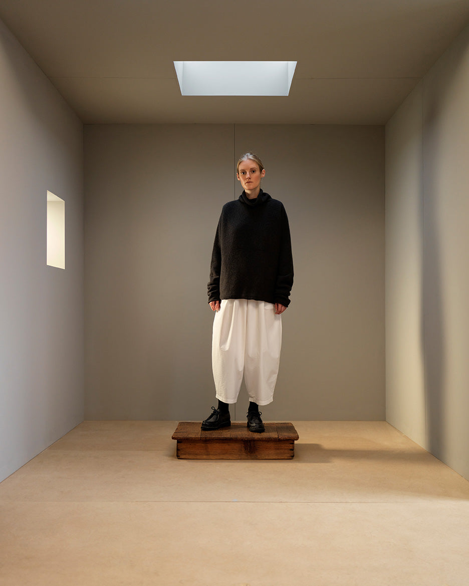 hand framed and finished cashmere jumper, made to order in 6-8 weeks