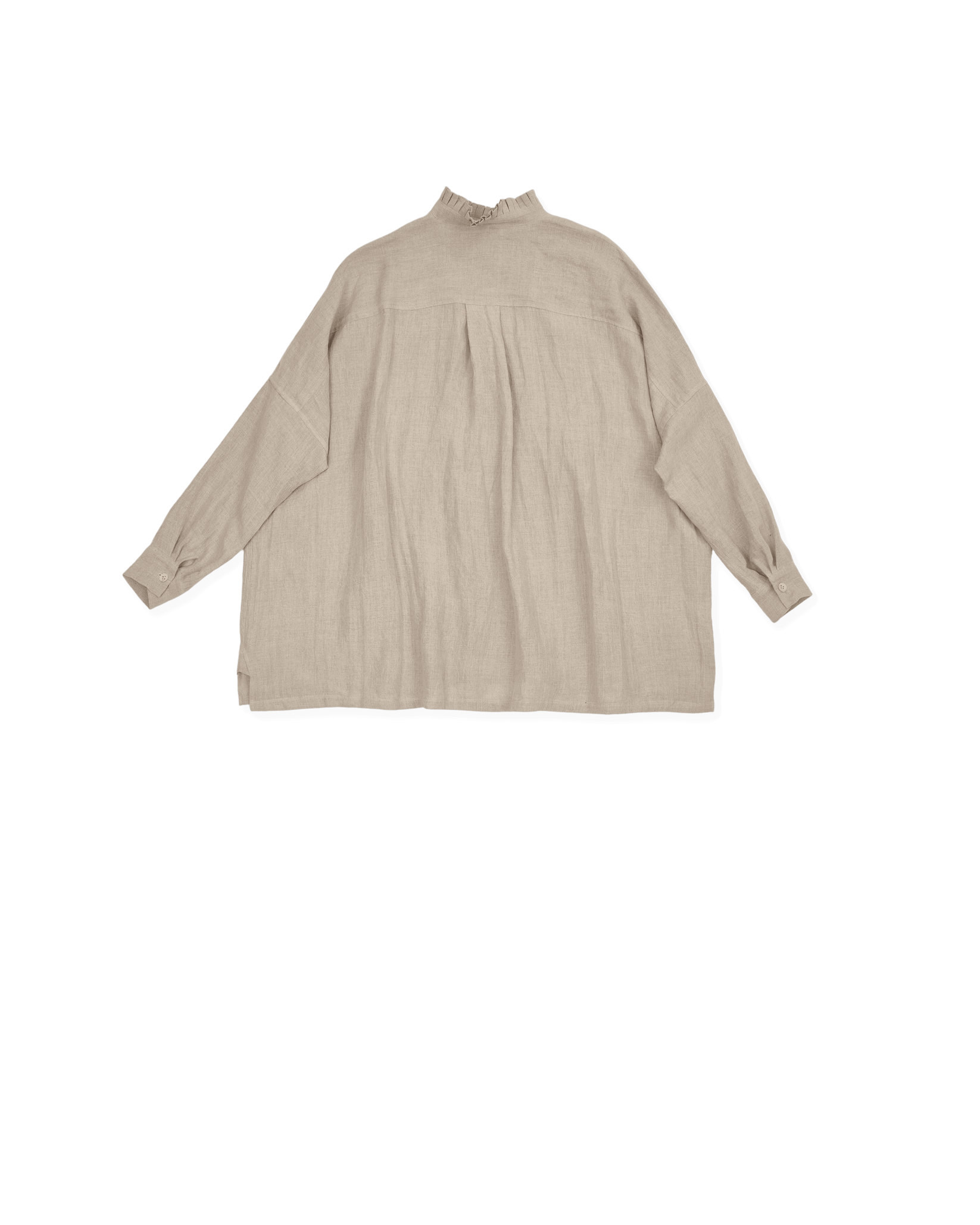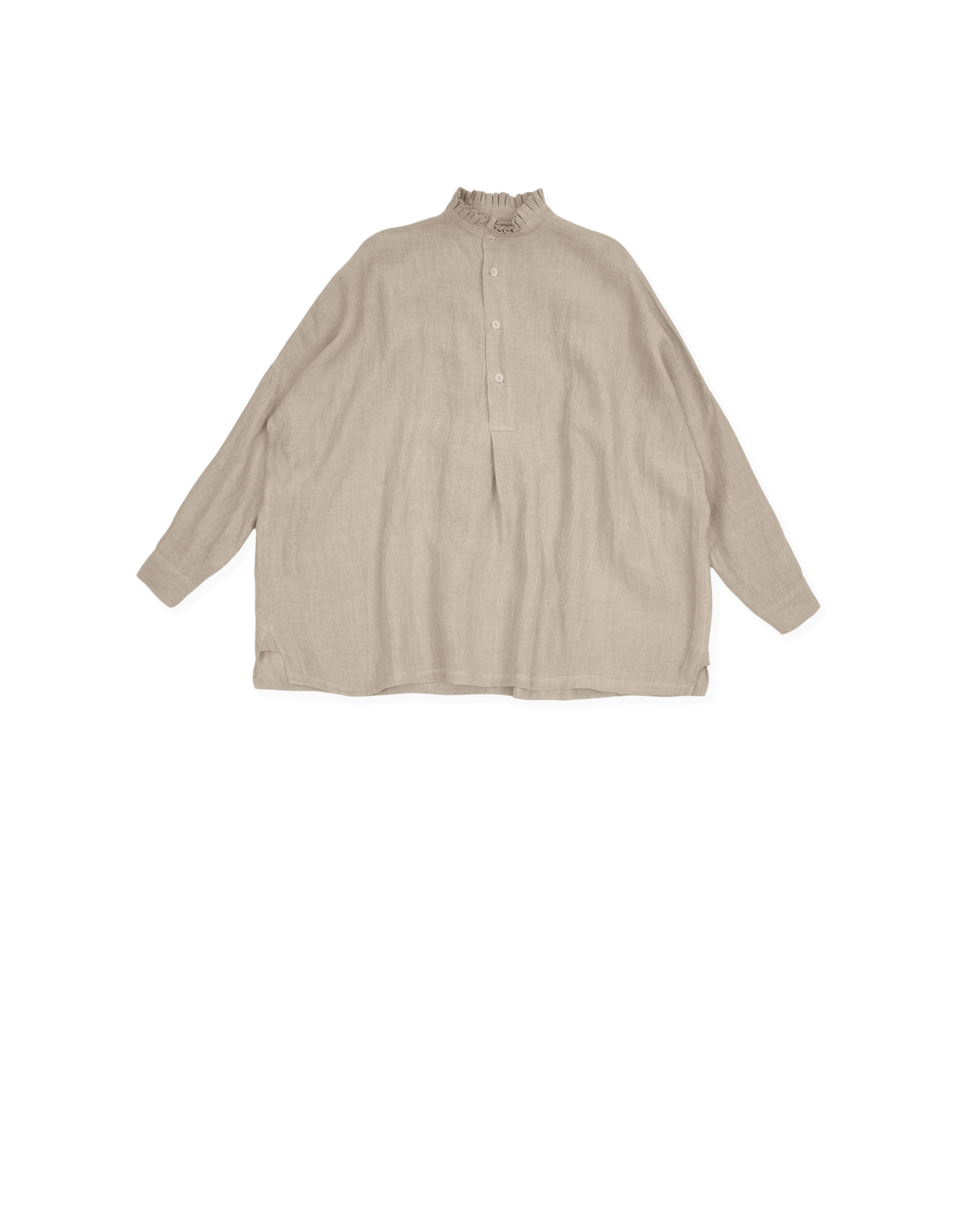square shirt, ruffle collar, a-line shape, covered buttons