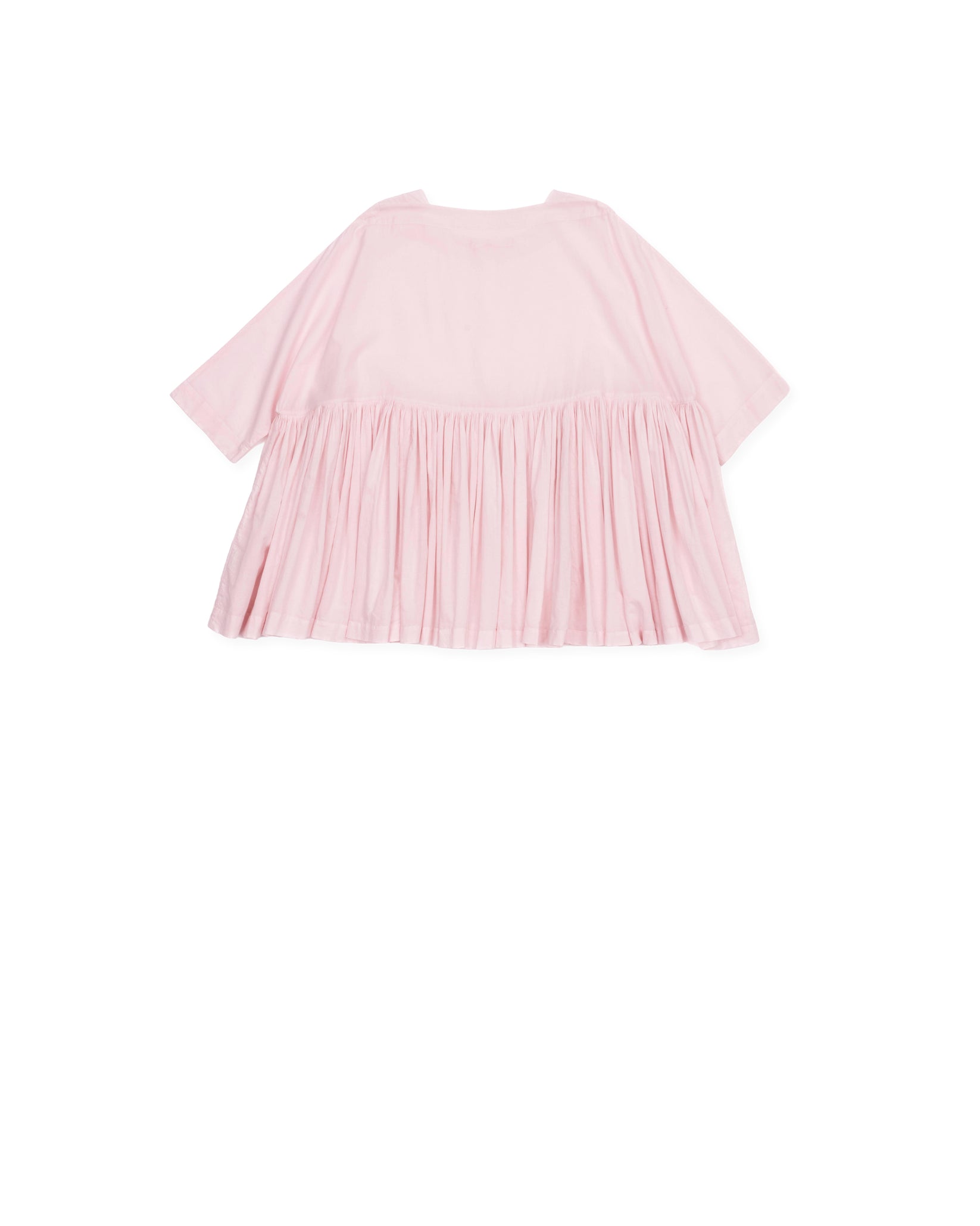 ruffled top, boat neck, elbow length sleeves, full skirt