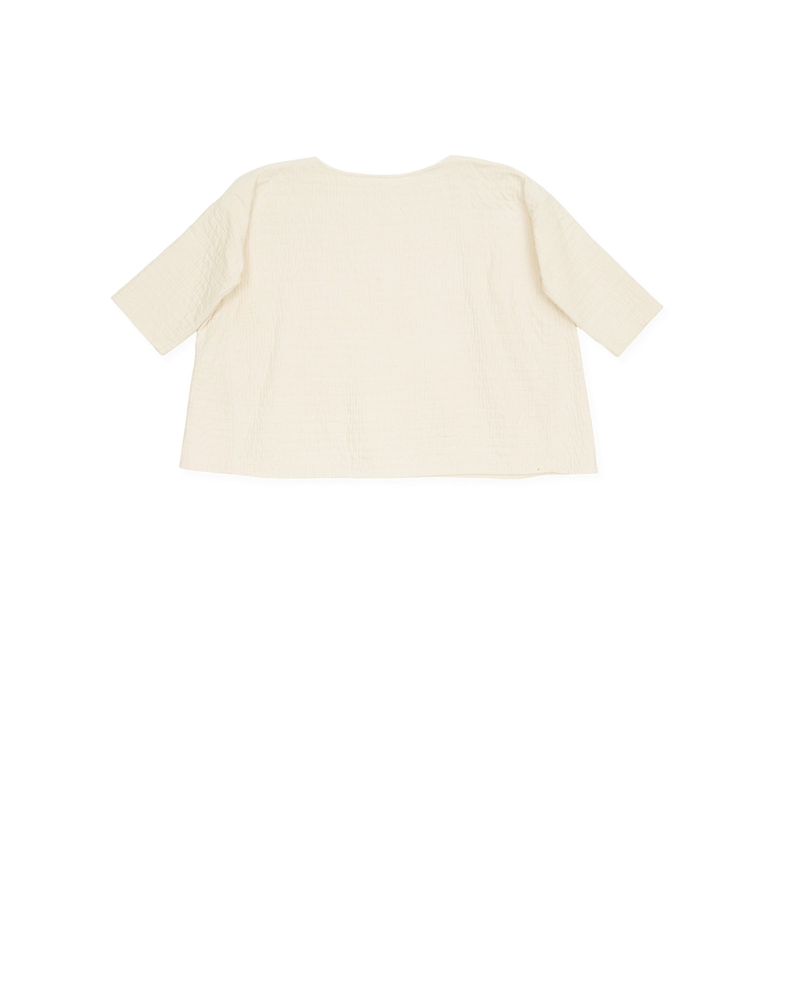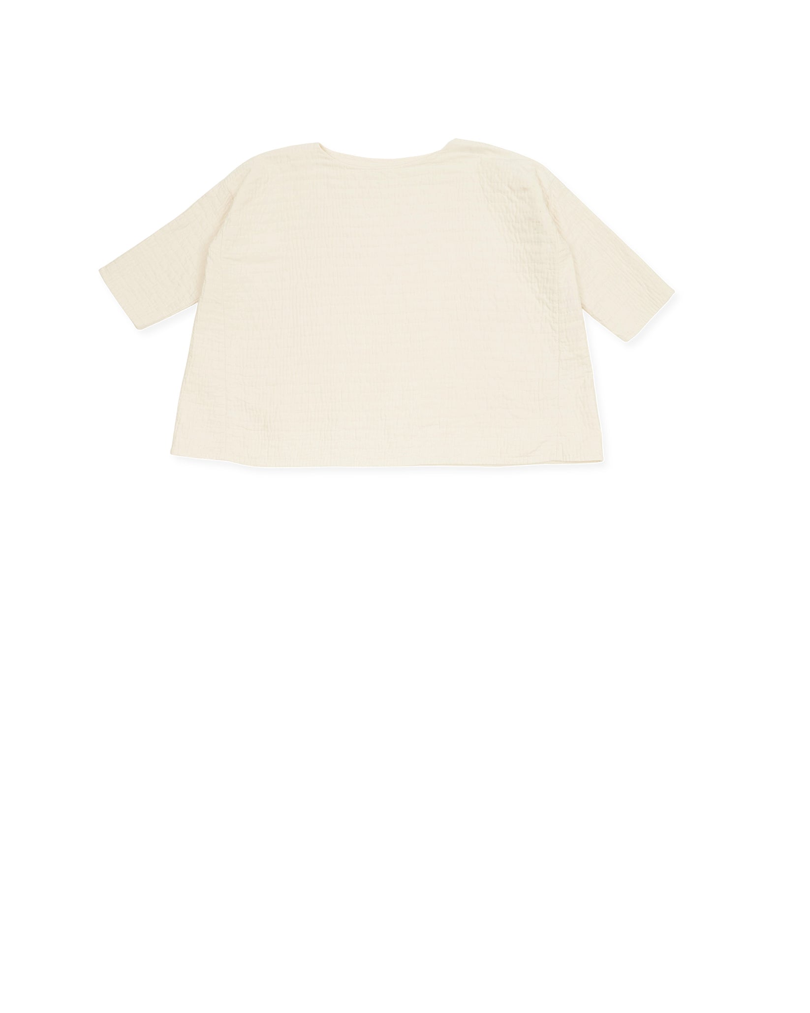 rectangle cut t-shirt, boatneck collar, back button fastening, side panel