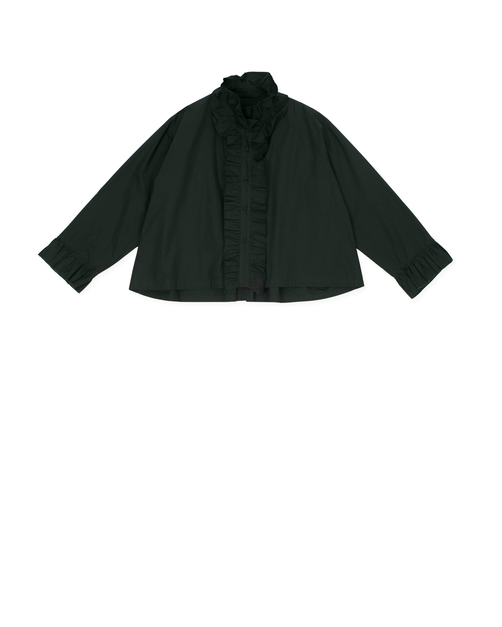 samphire cropped shirt, ruffle cuffs and hem, shorter front, drop shoulder