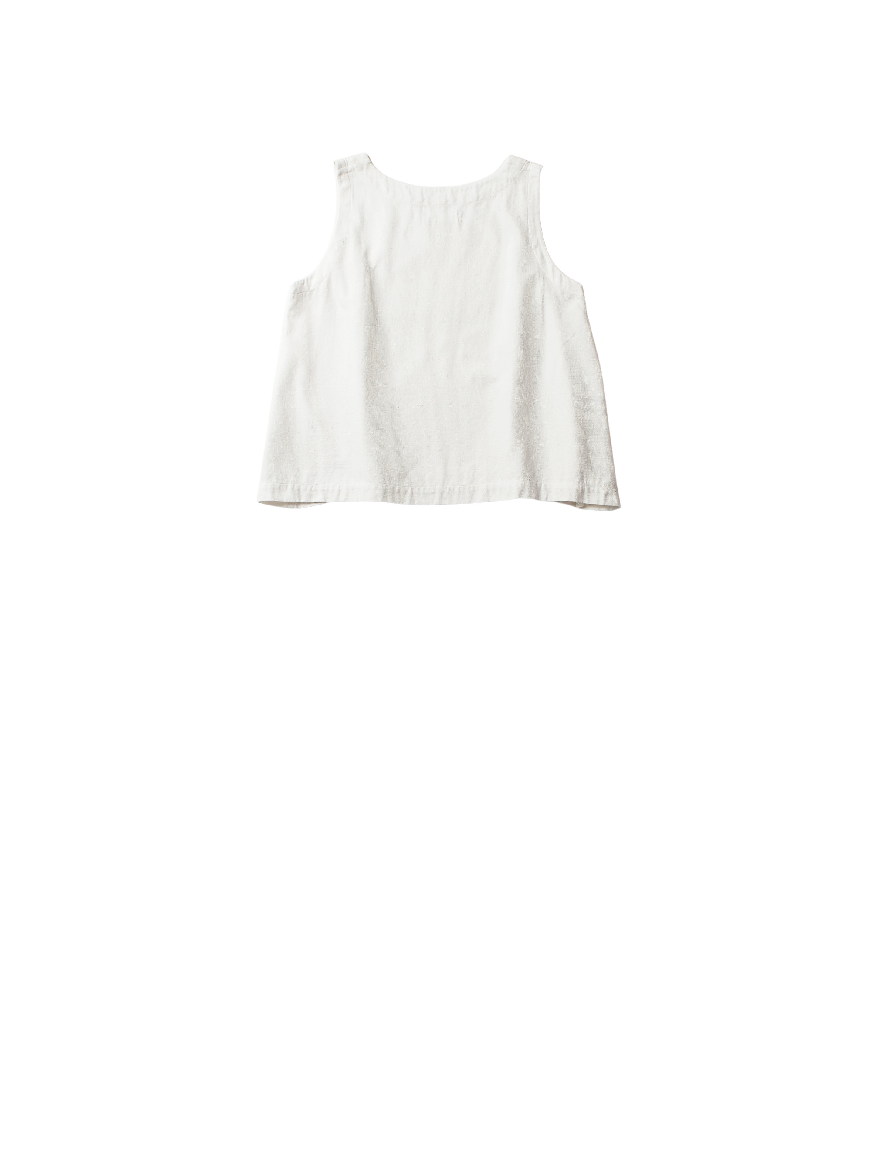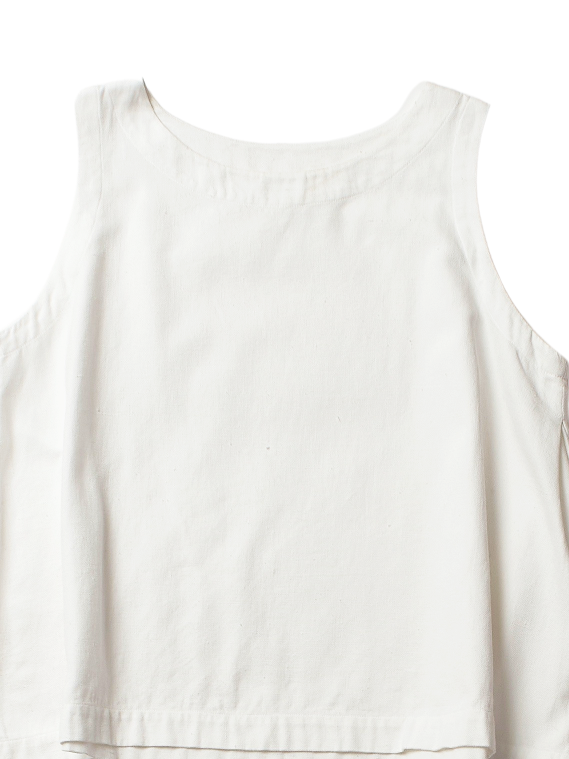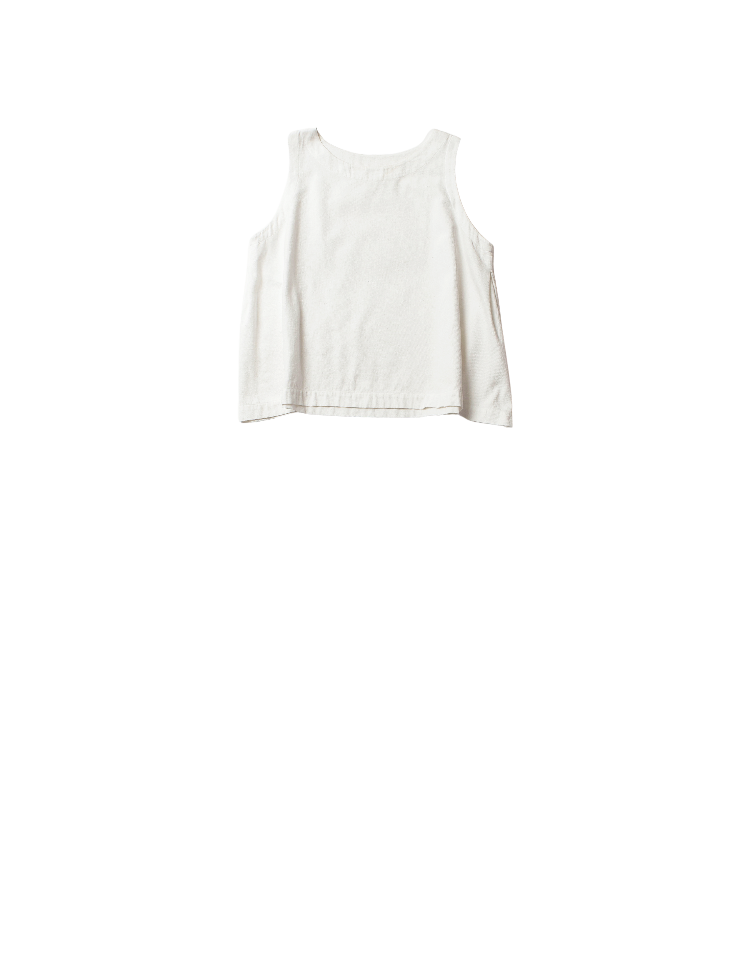 simple sleeveless top, aline shape, rounded neck, side pleats