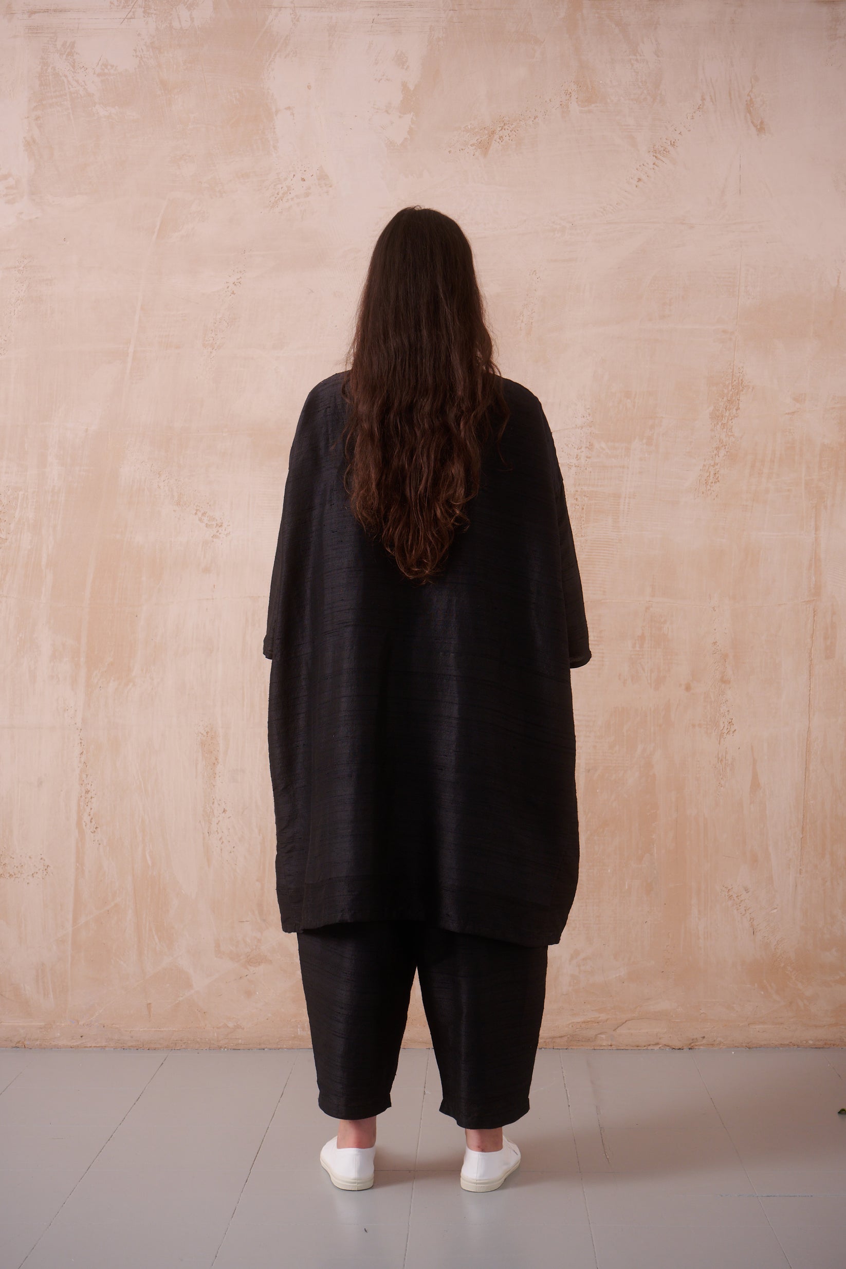 raw textured lightweight silk in black