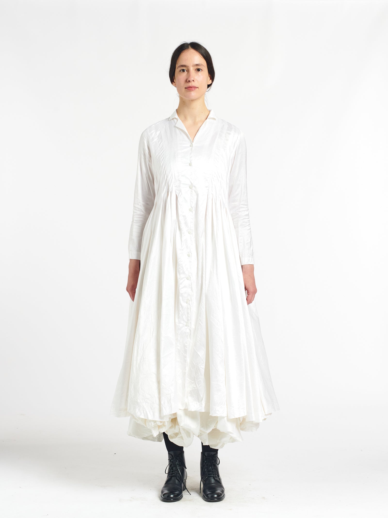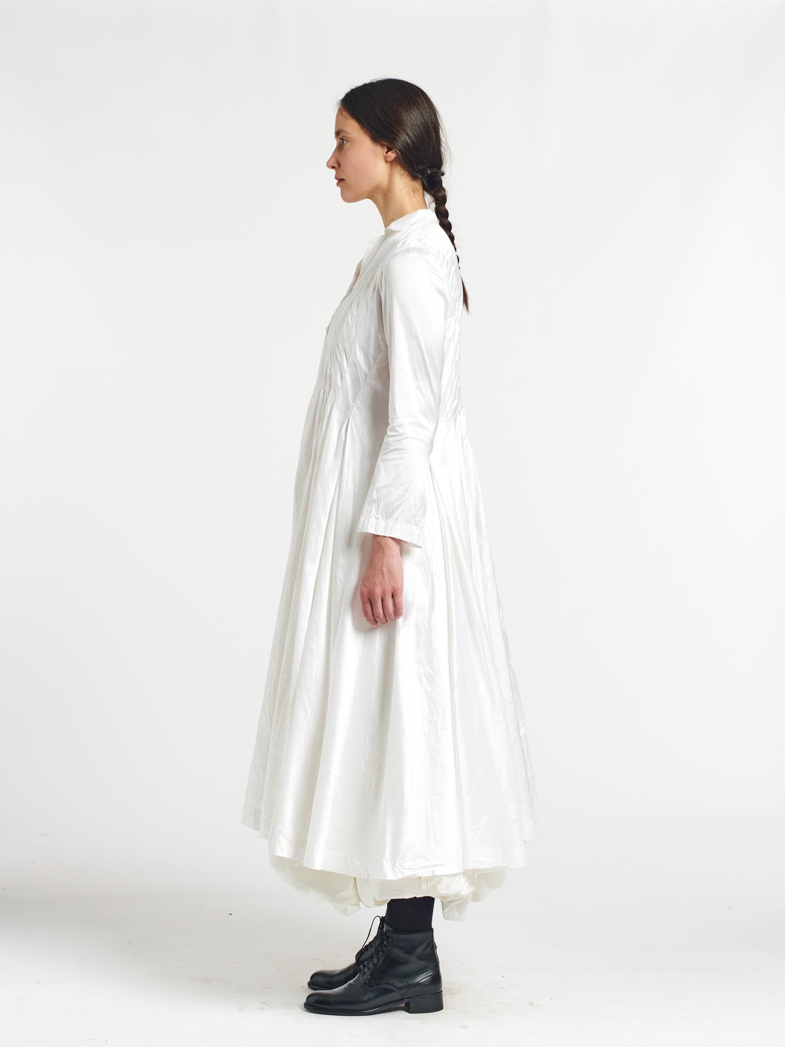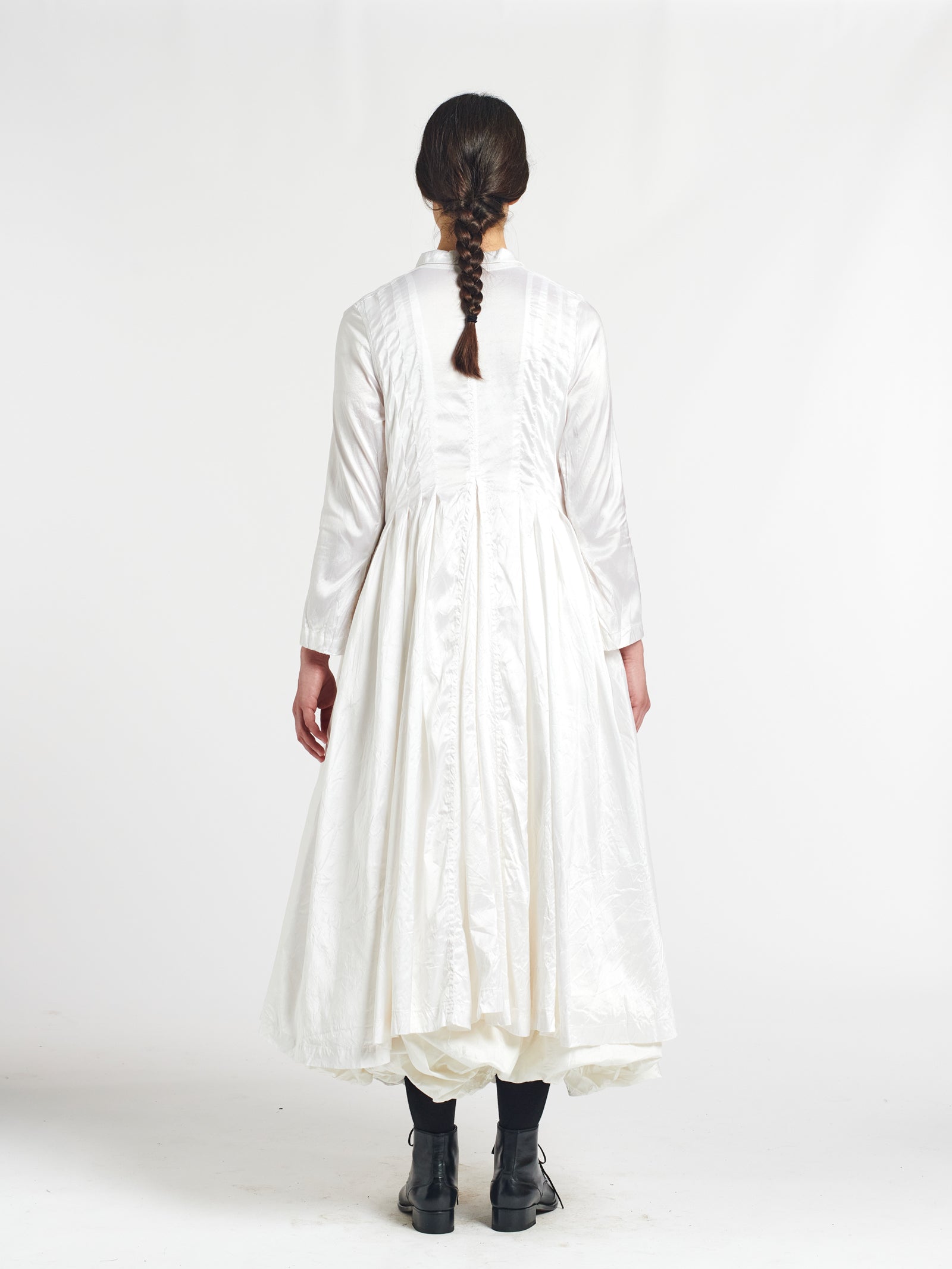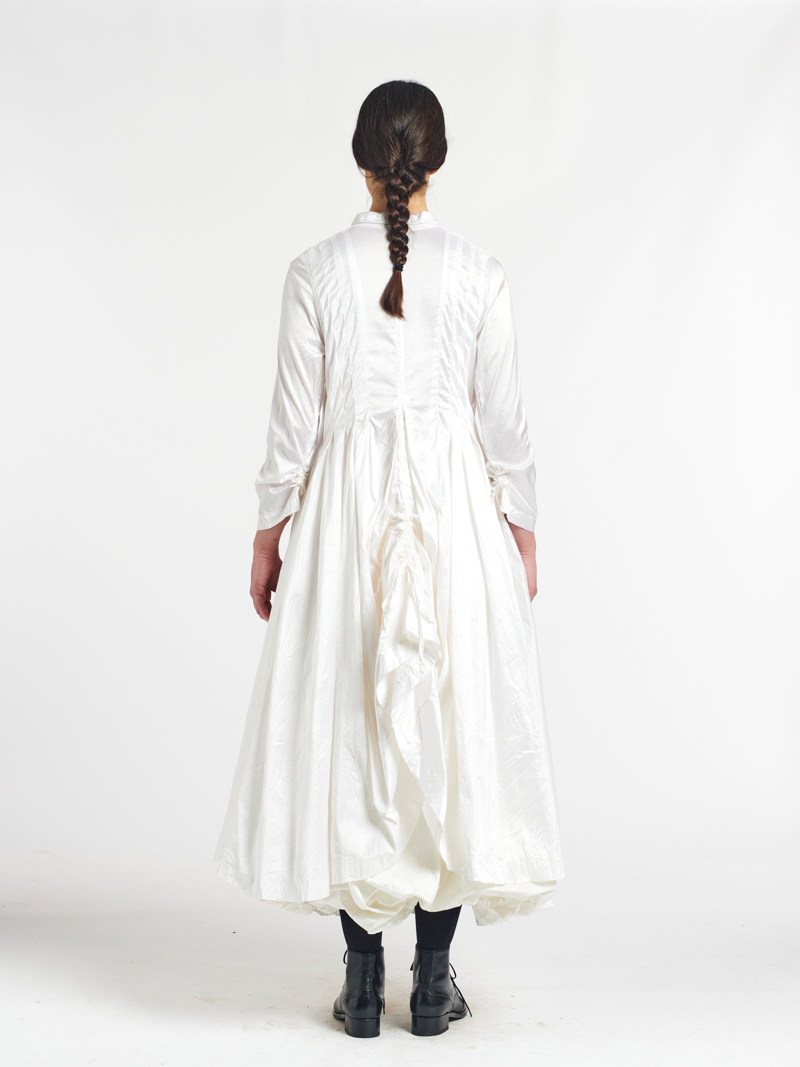 fitted dress coat with ruched skirt