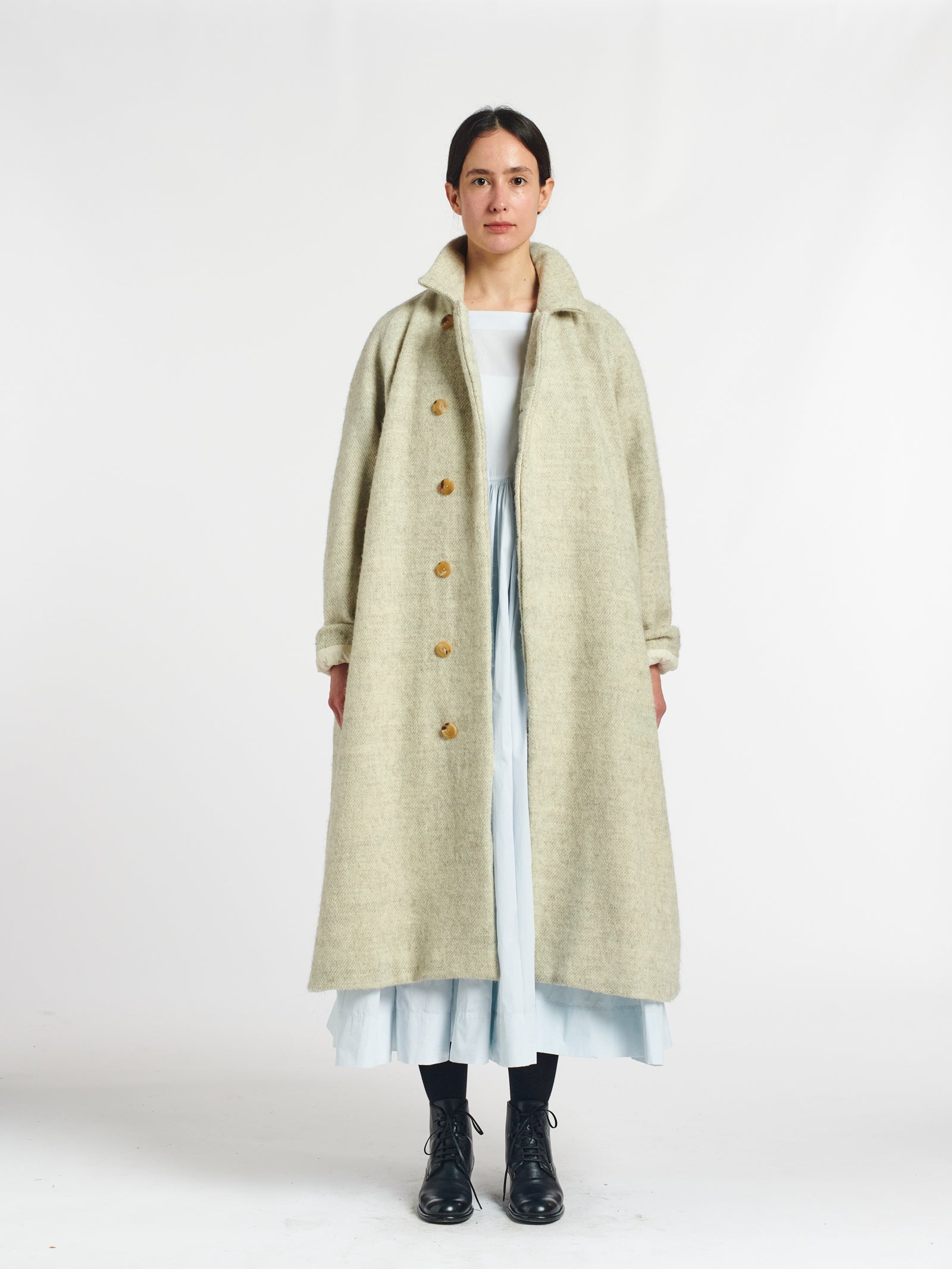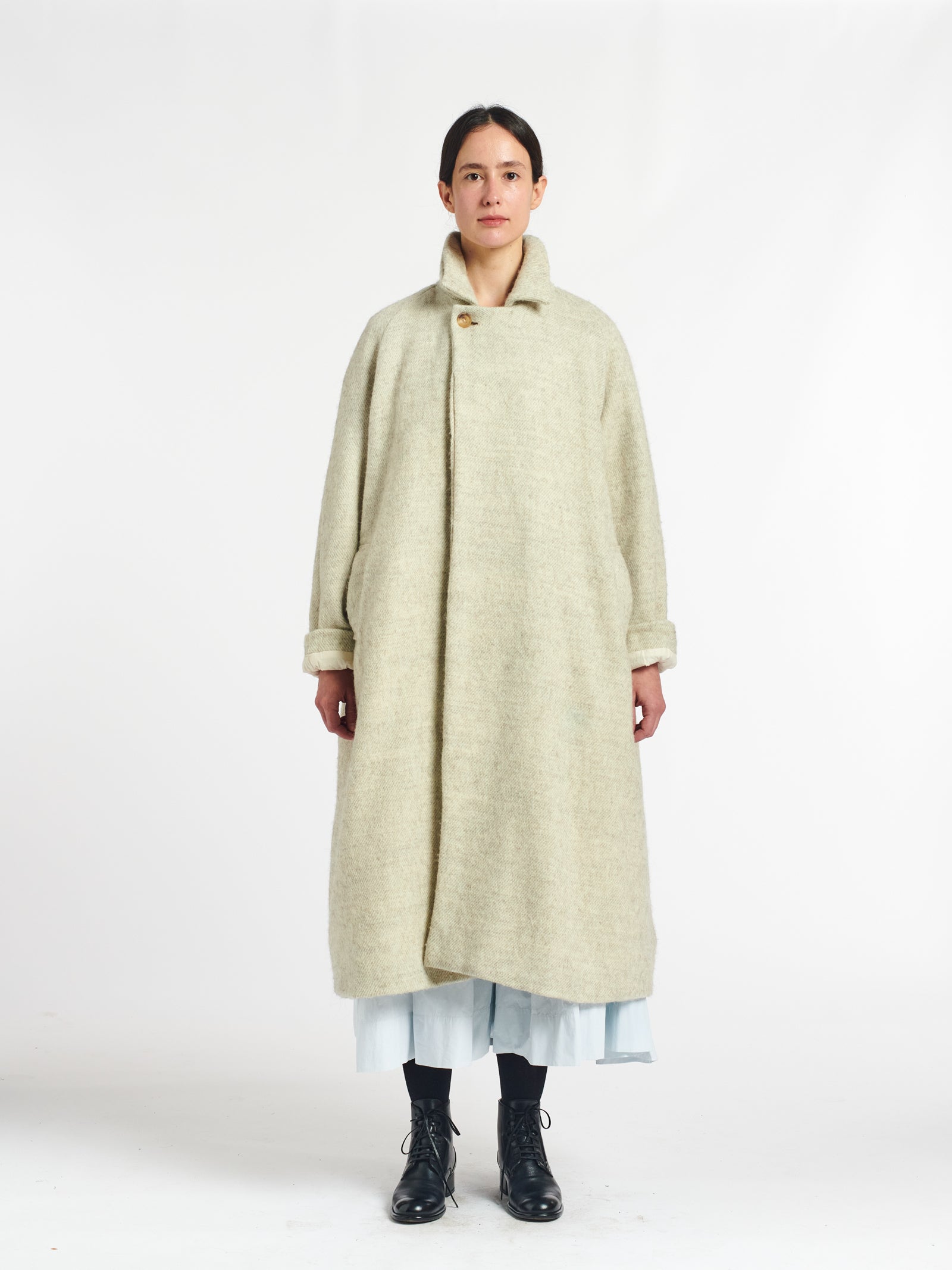 oversized heavy white buttoned coat