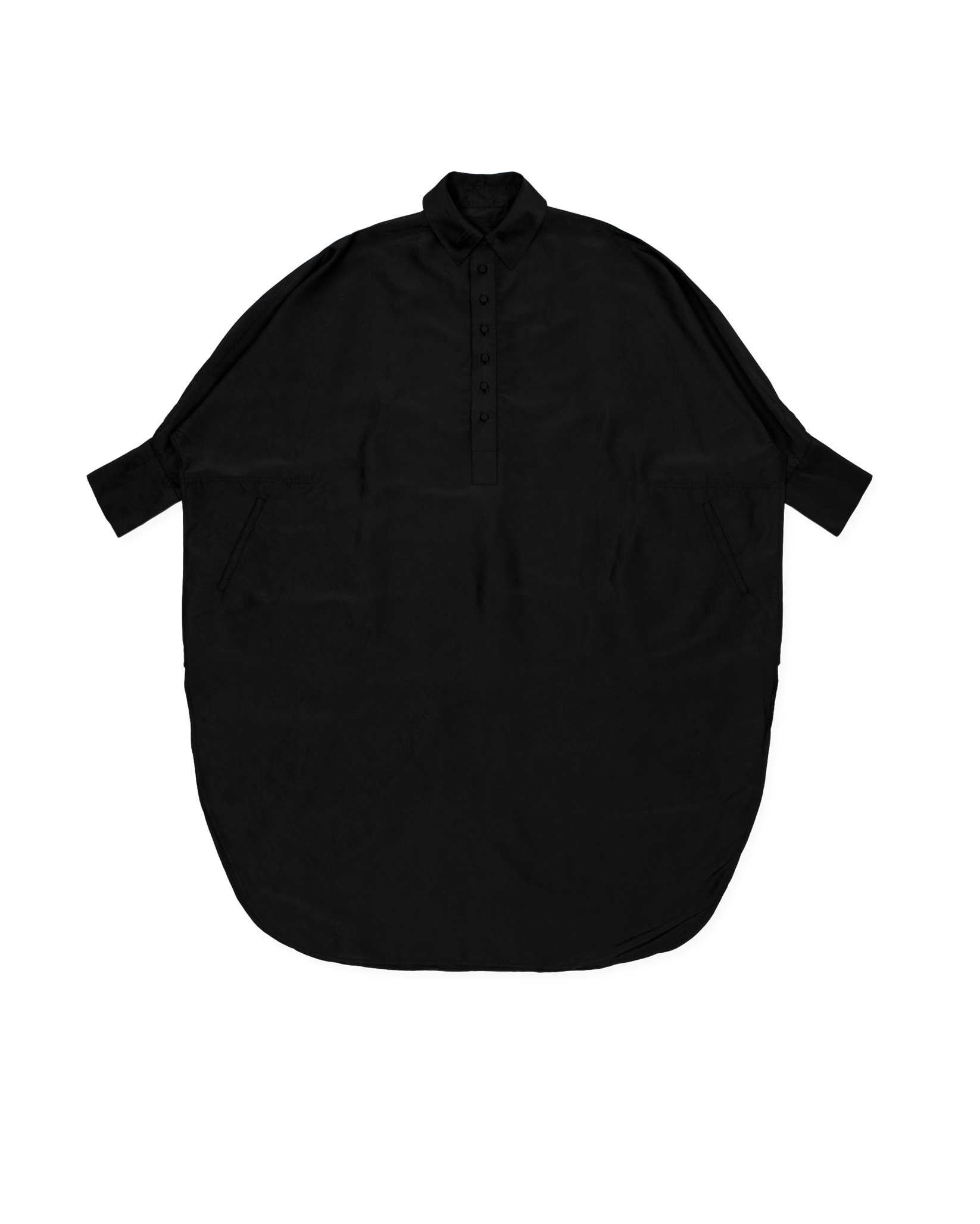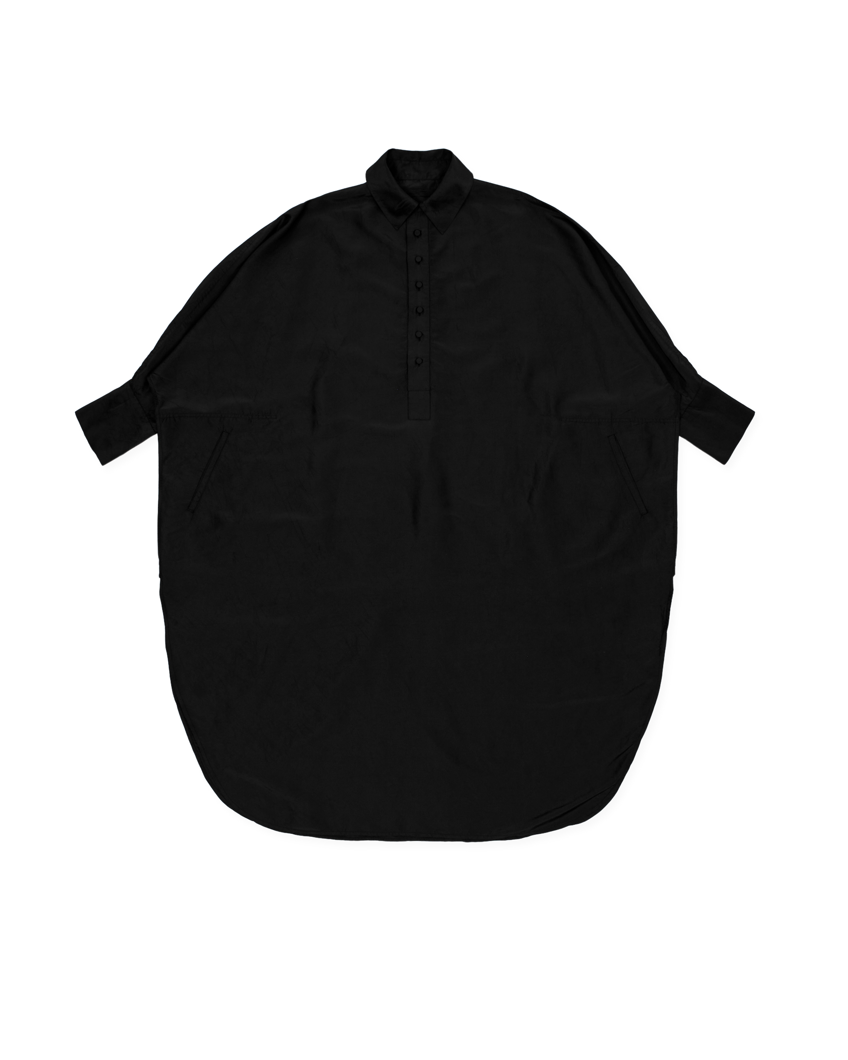 pepper oversized shirt, wide cut, tapered sides, slant front pockets lightweight crispy taffeta 100% silk one size chest flat 100cm, length 123cm