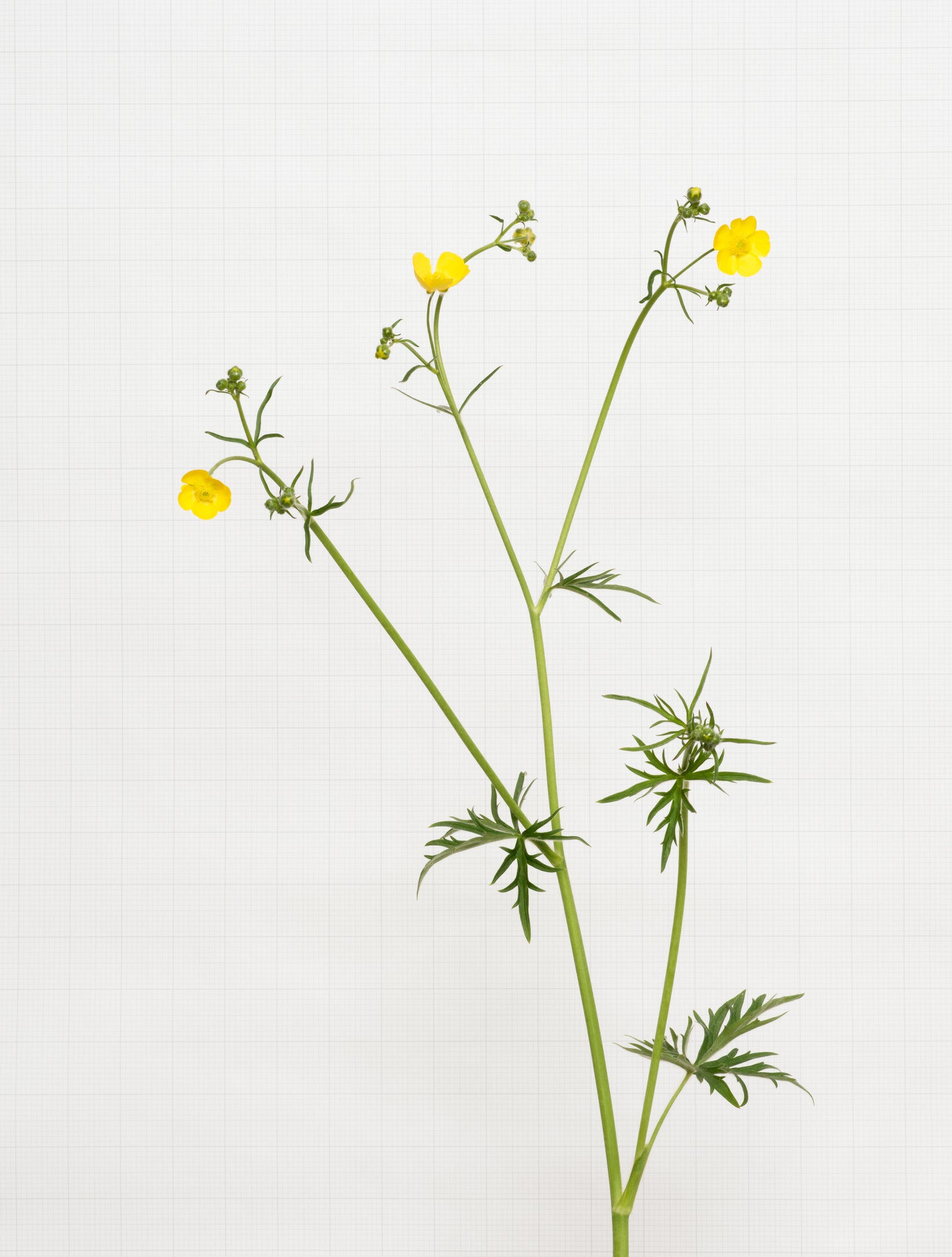 Buttercups get their bright colour from yellow pigments in the petals’ surface layer and their shiny gloss is due to air just beneath the surface, reflecting the light, like mirrors.