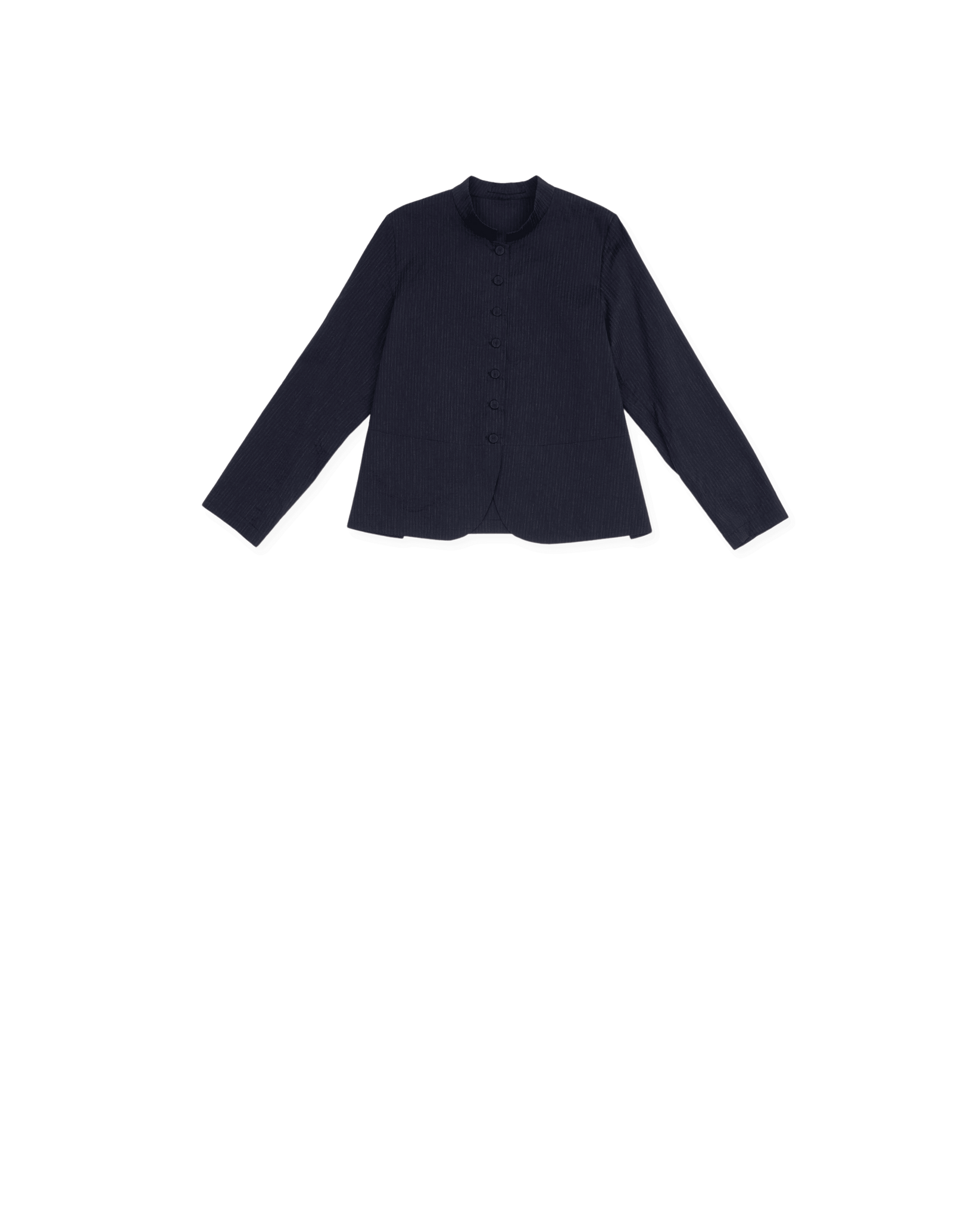 tailored jacket with neru collar, a-line, slit pockets, covered buttons