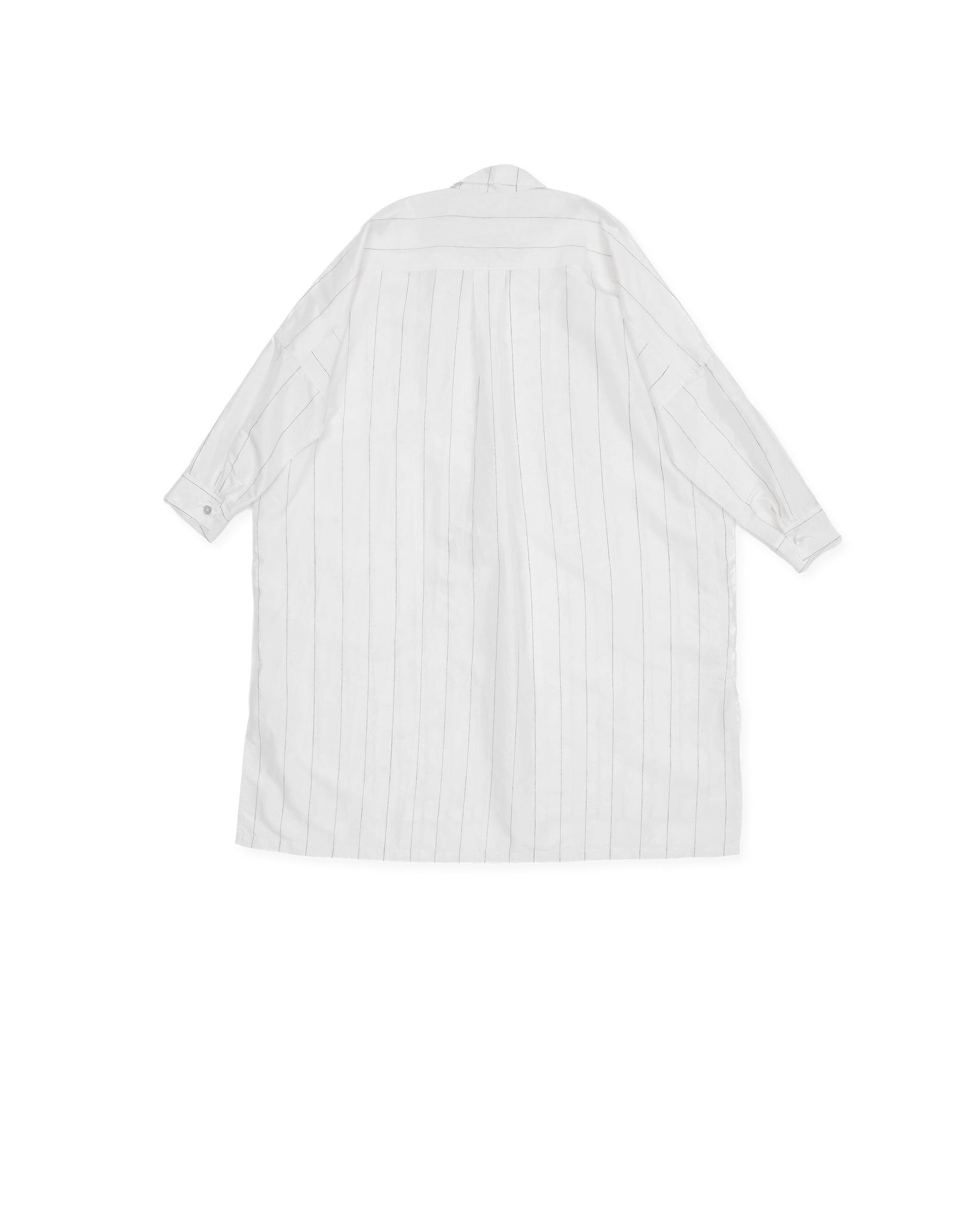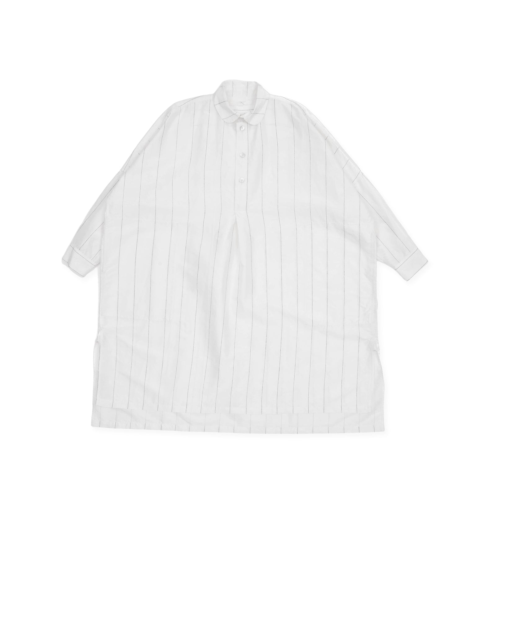 wide button down shirt, button fastening collar, side pockets, rounded collar