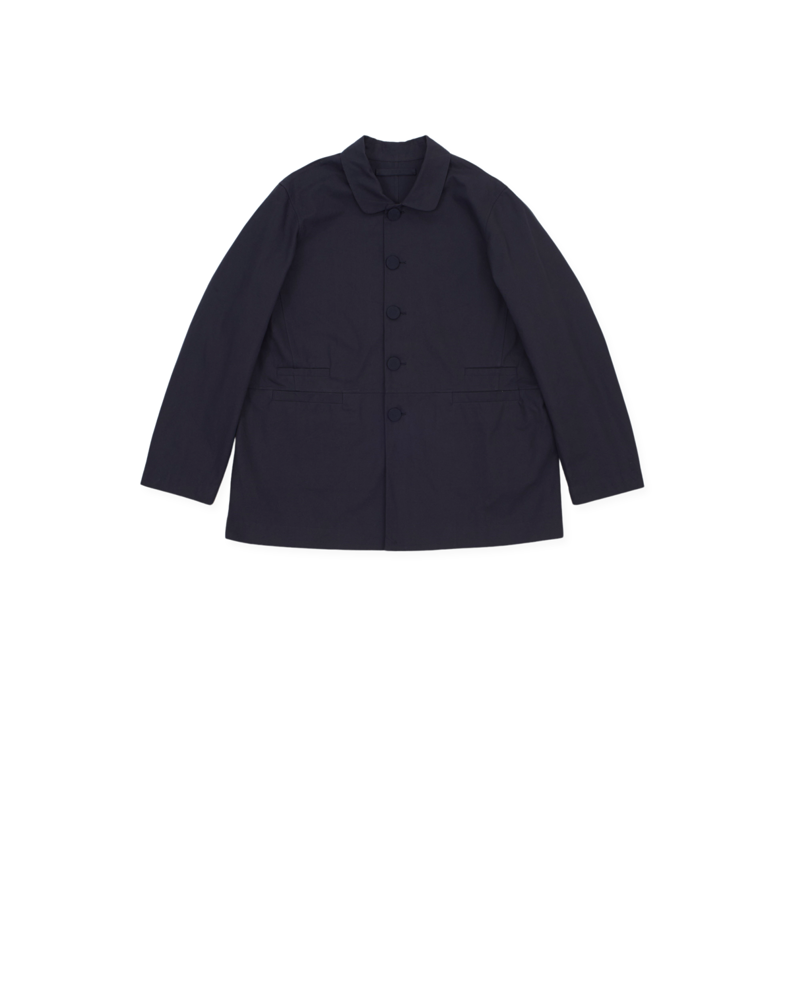 mens boxy jacket, double concealed front pockets, mid waist seam, soft collar